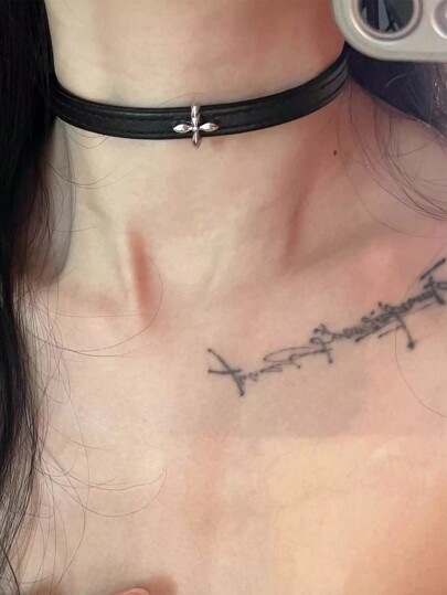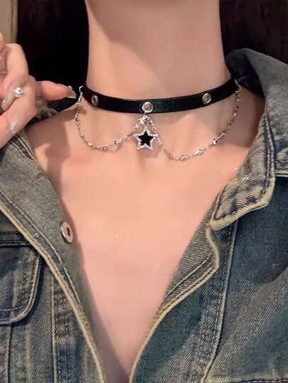 レディース マルチレイヤーネックレスエッジィーでスウィートなブラックレザーコードネックレスチョーカーネックレス