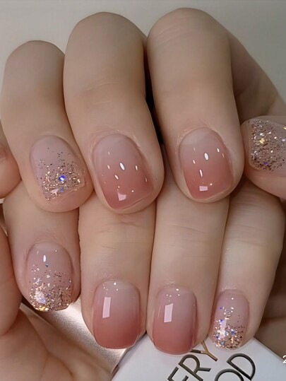 ジェリー調 オンブルカラー ネイルアートセット 短方形 24個入りパーティーや日常でのプレスオンネイルに最適 偽ネイル 偽爪 フェイクネイル つけ爪