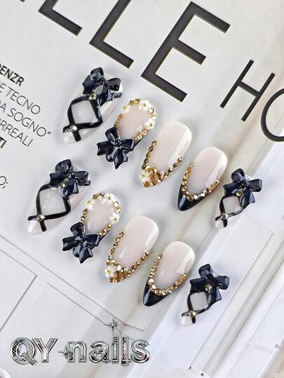 10個入り アーモンド型ネイルシールかわいいスタイル取り外し可能パーティーダンス日常着学生集会オフィスロールプレイに適しています粘着剤付きで再利用可能ネイルジェルとネイルファイルも付