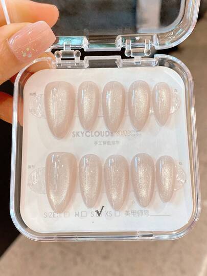 10個 ハンドメイド グレー猫目型 3Dクリスタル付き つけ爪 尖った アーモンド型学生妊婦日常着パーティーに適していますジェルポリッシュ付き つけ爪ネイルサプライ ハンドメイド つけ爪