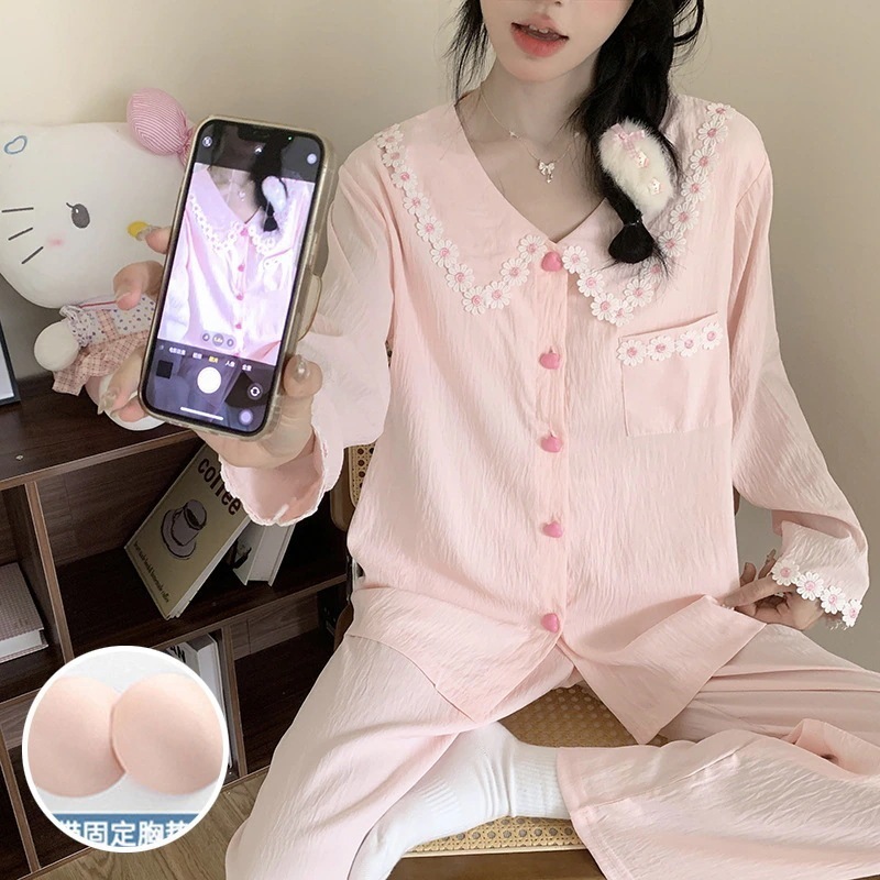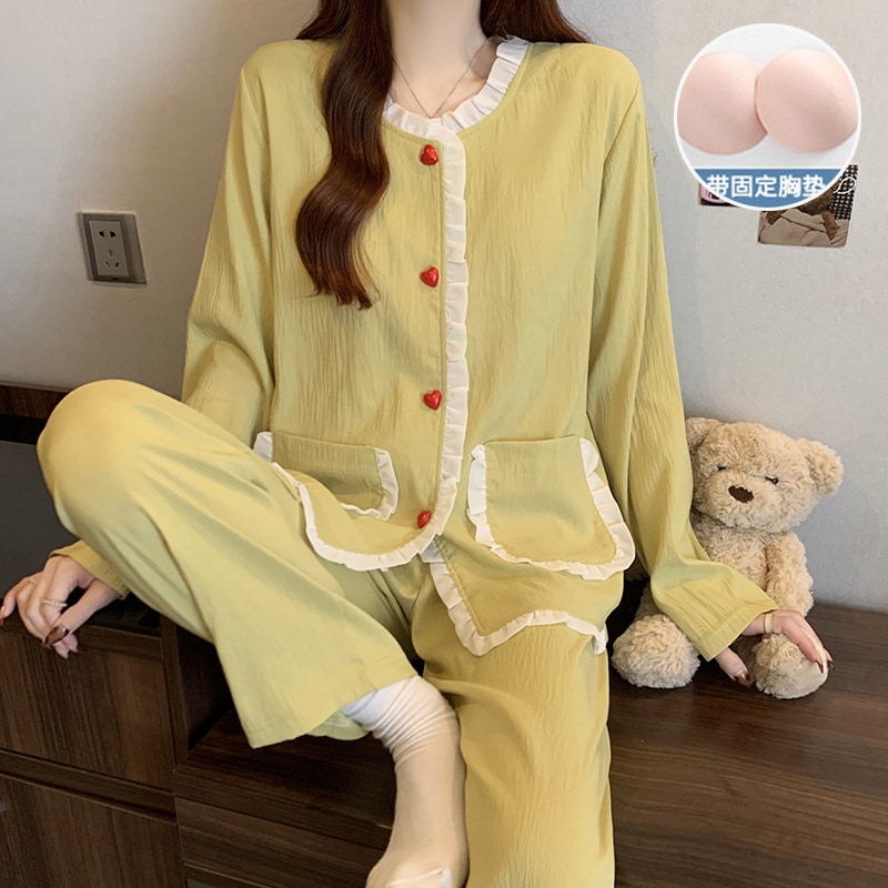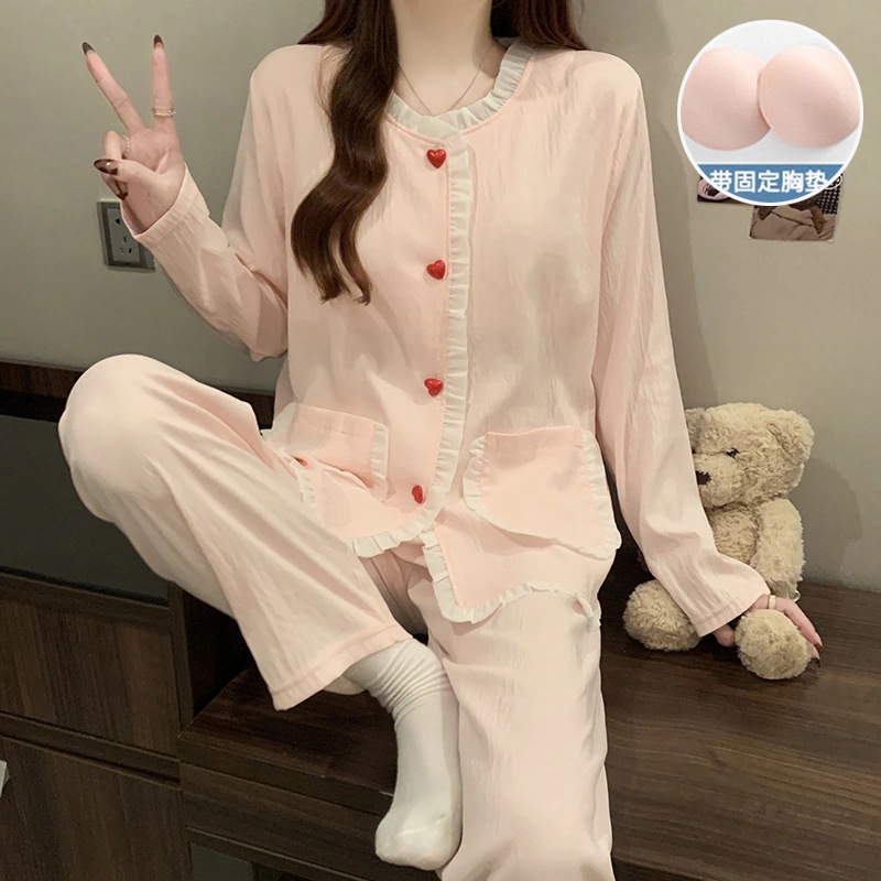 パジャマ レディース春秋薄手長袖風ホームウェアセット