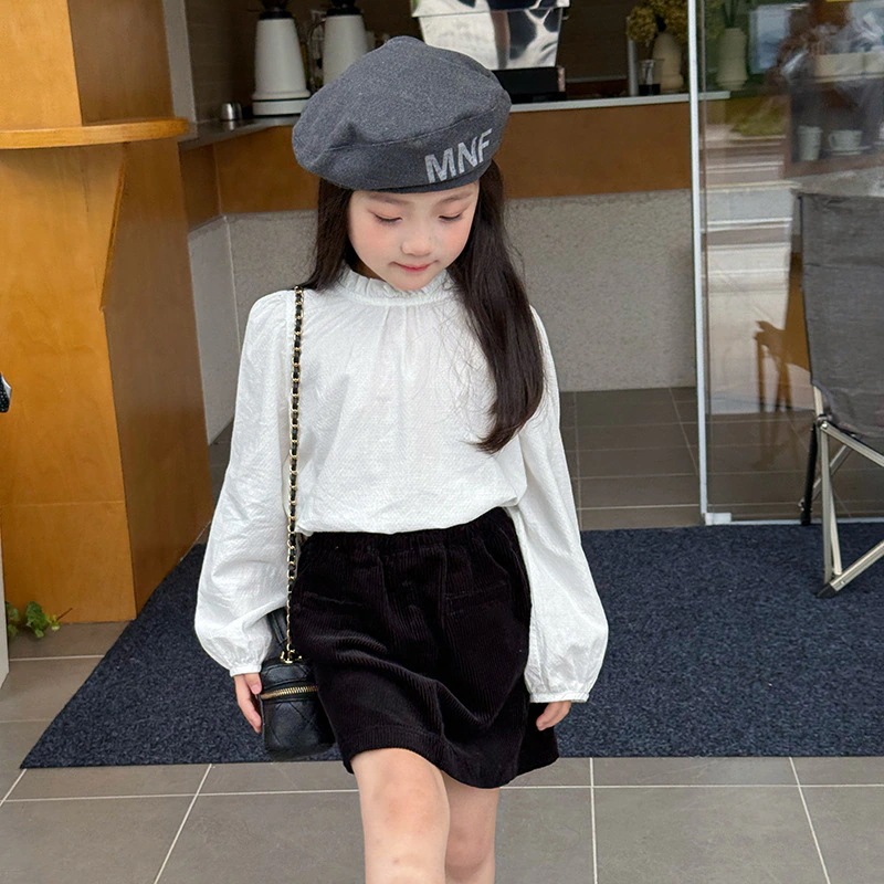 子供 ブラウス秋用ブラウス 子供用レース付きスタンドカラージャカードシャツ