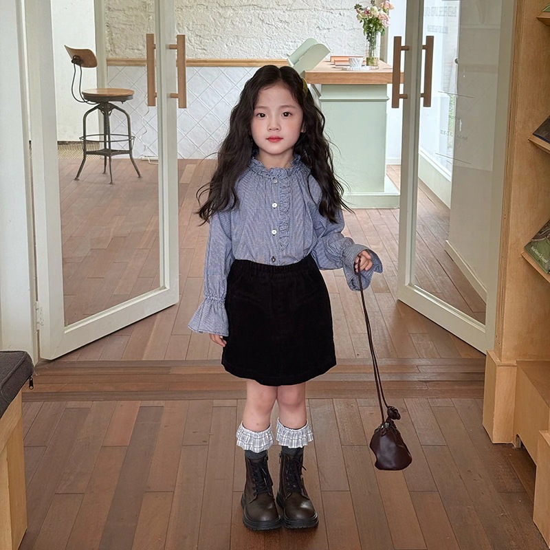 子供 ブラウス アルファベットシャツ レース袖口 チェック柄レースシャツ