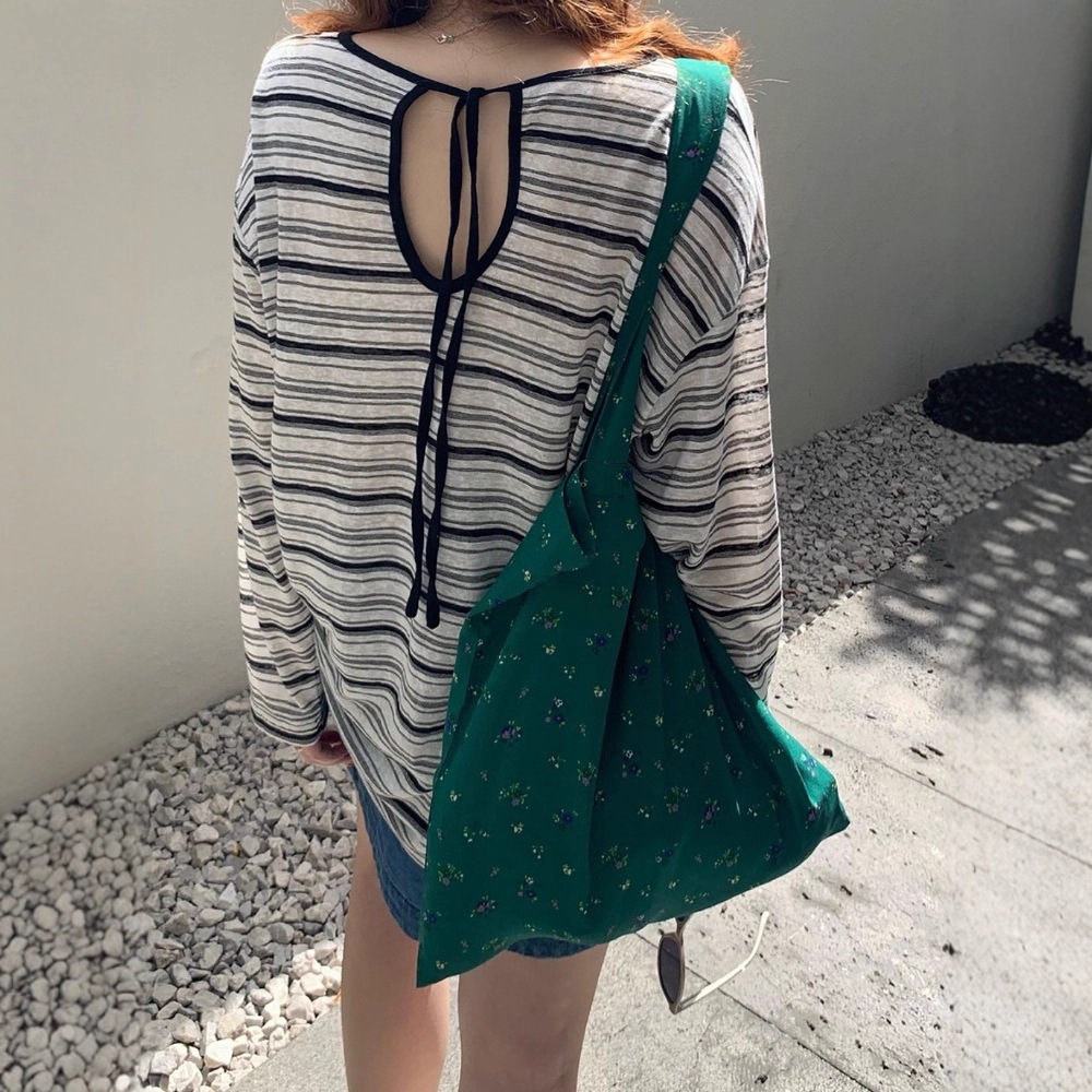 韓国風ブラックストライプ薄手長袖日よけカーディガン女性夏新作ゆったり空洞デザインこなれ感Tシャツトップストレンド