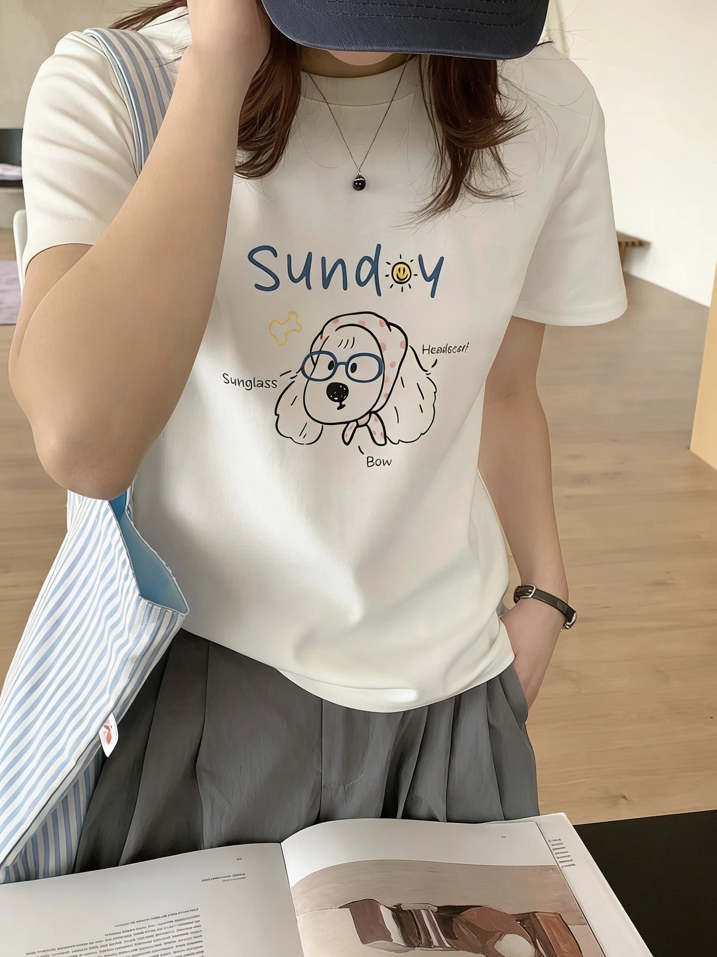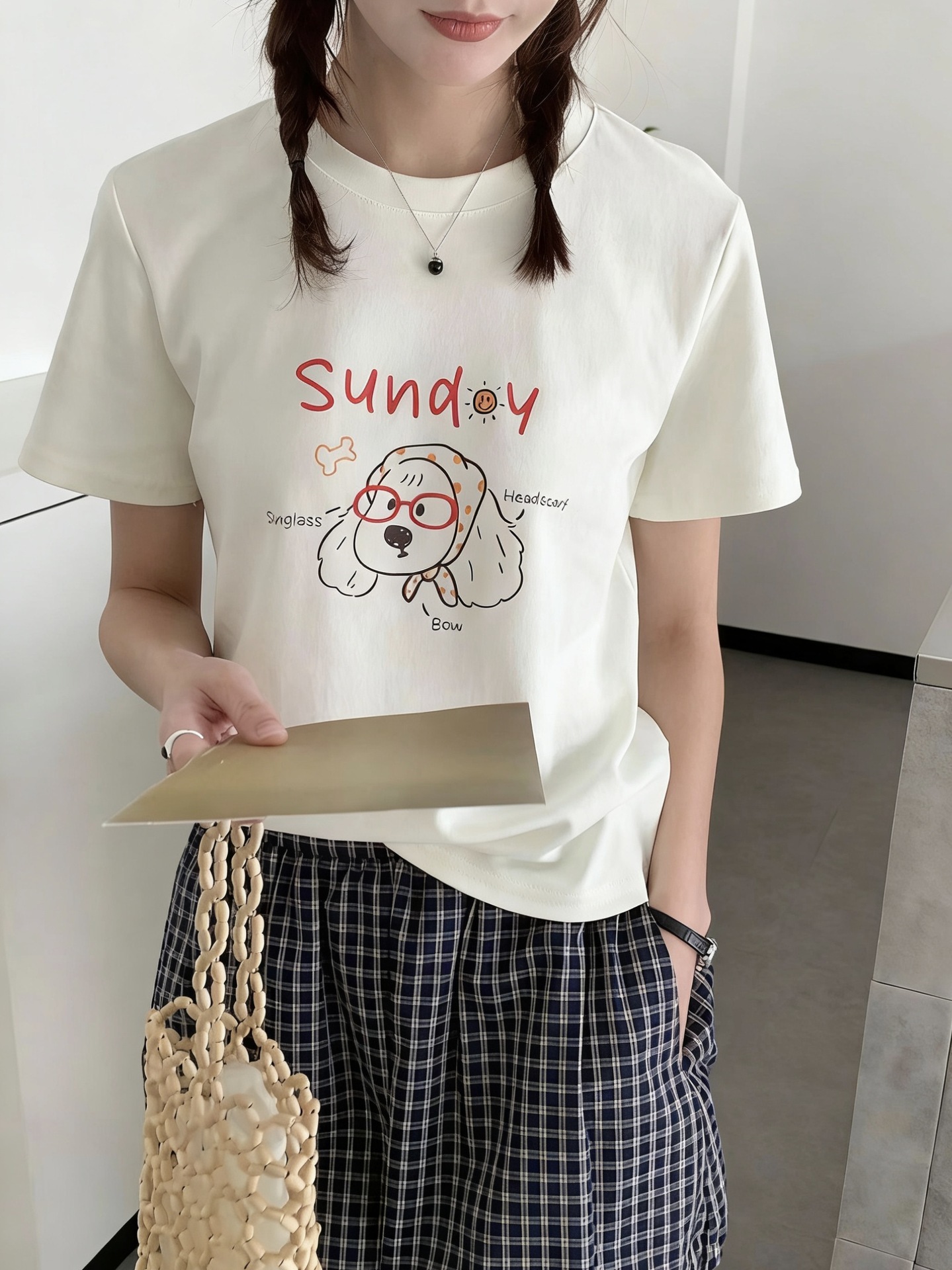 韓国系かわいい落書き子犬プリント半袖tシャツ女性漫画プリント丸首カジュアル百合上着夏新作