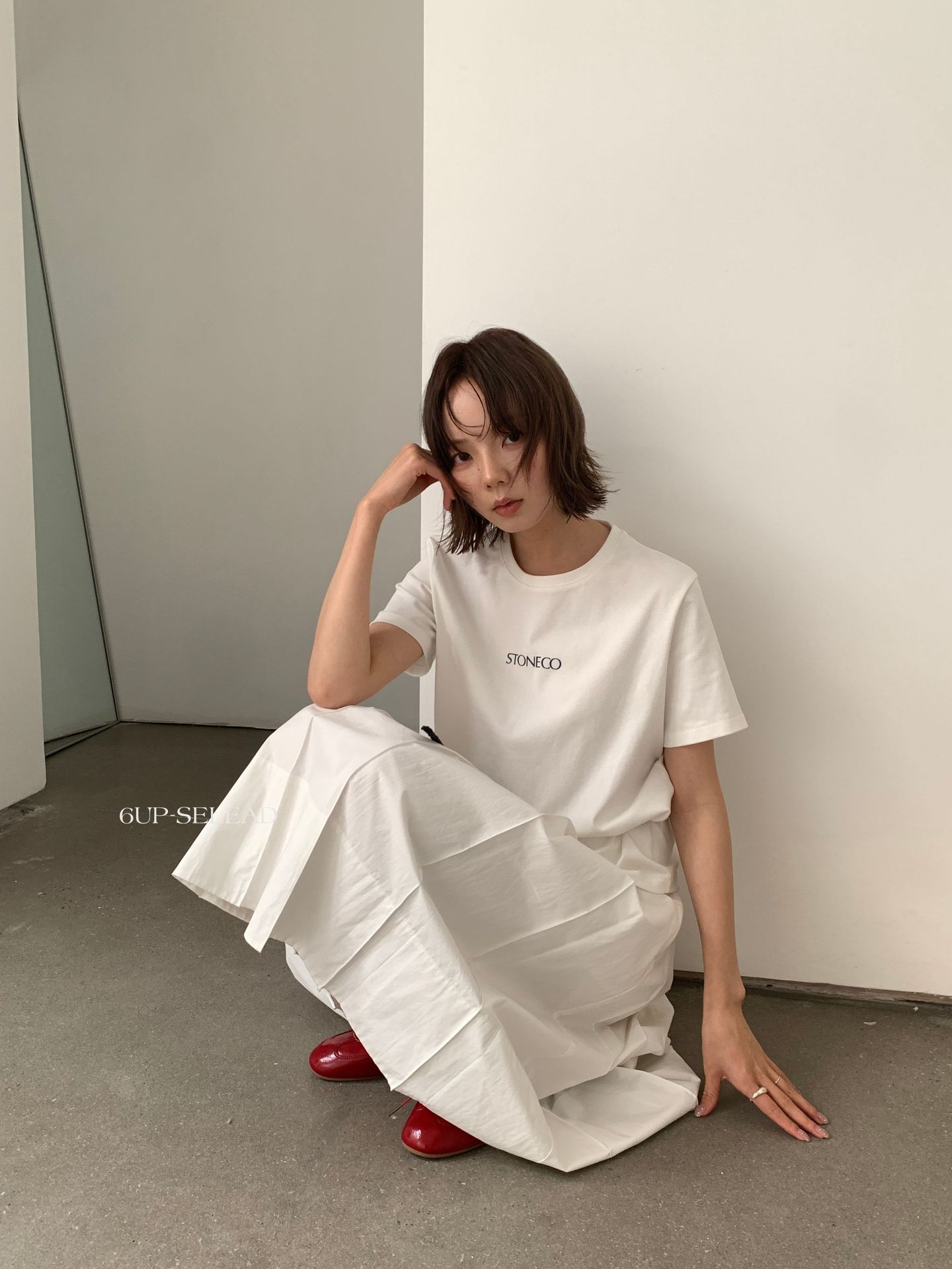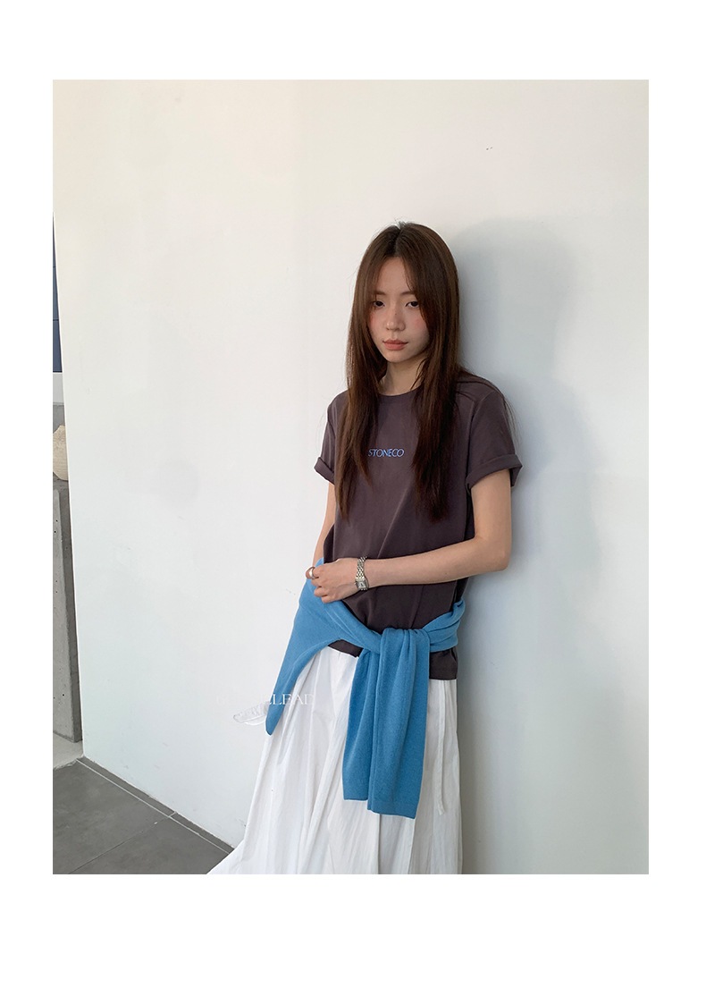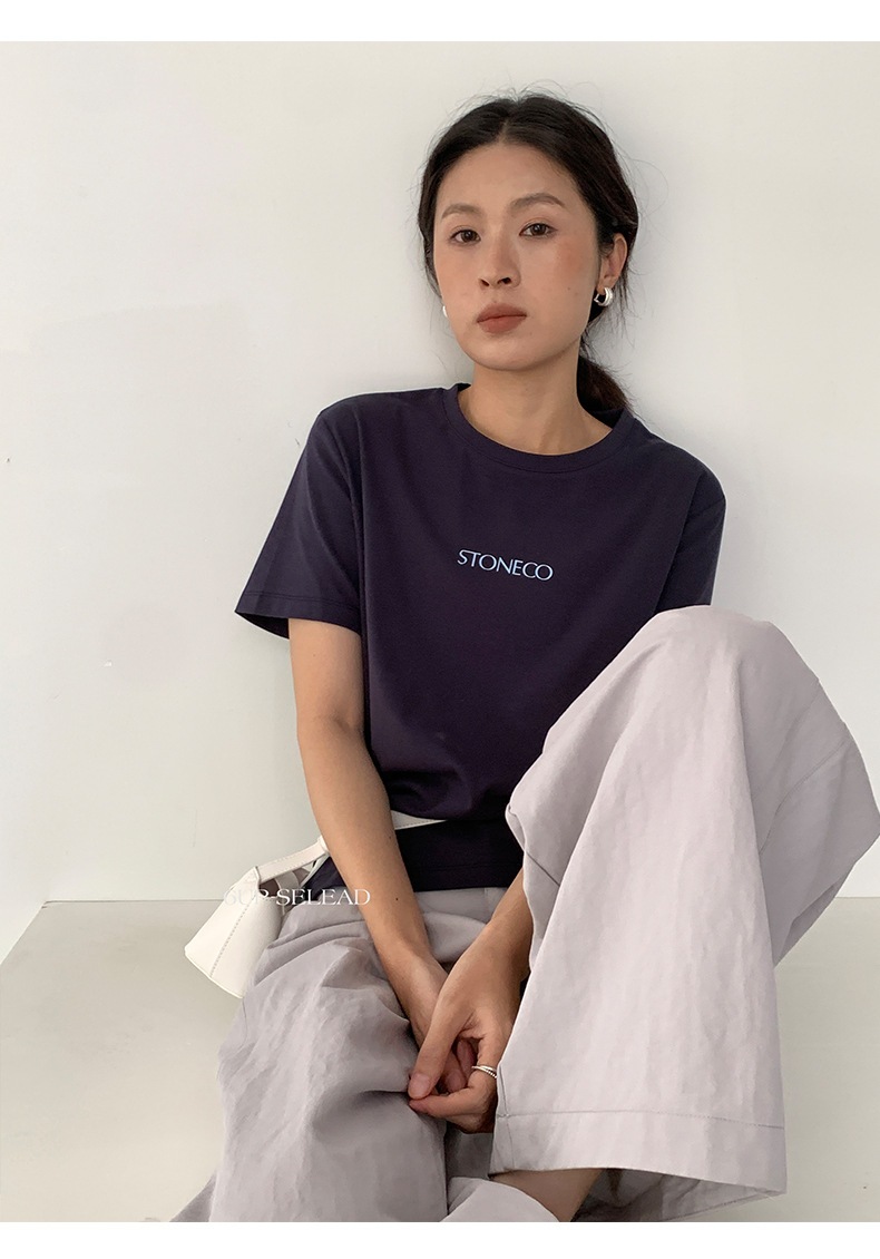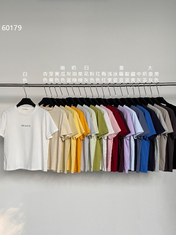 6UP早春韓系極簡字綿tシャツ半袖広州13行の新型多色百合上着女60179