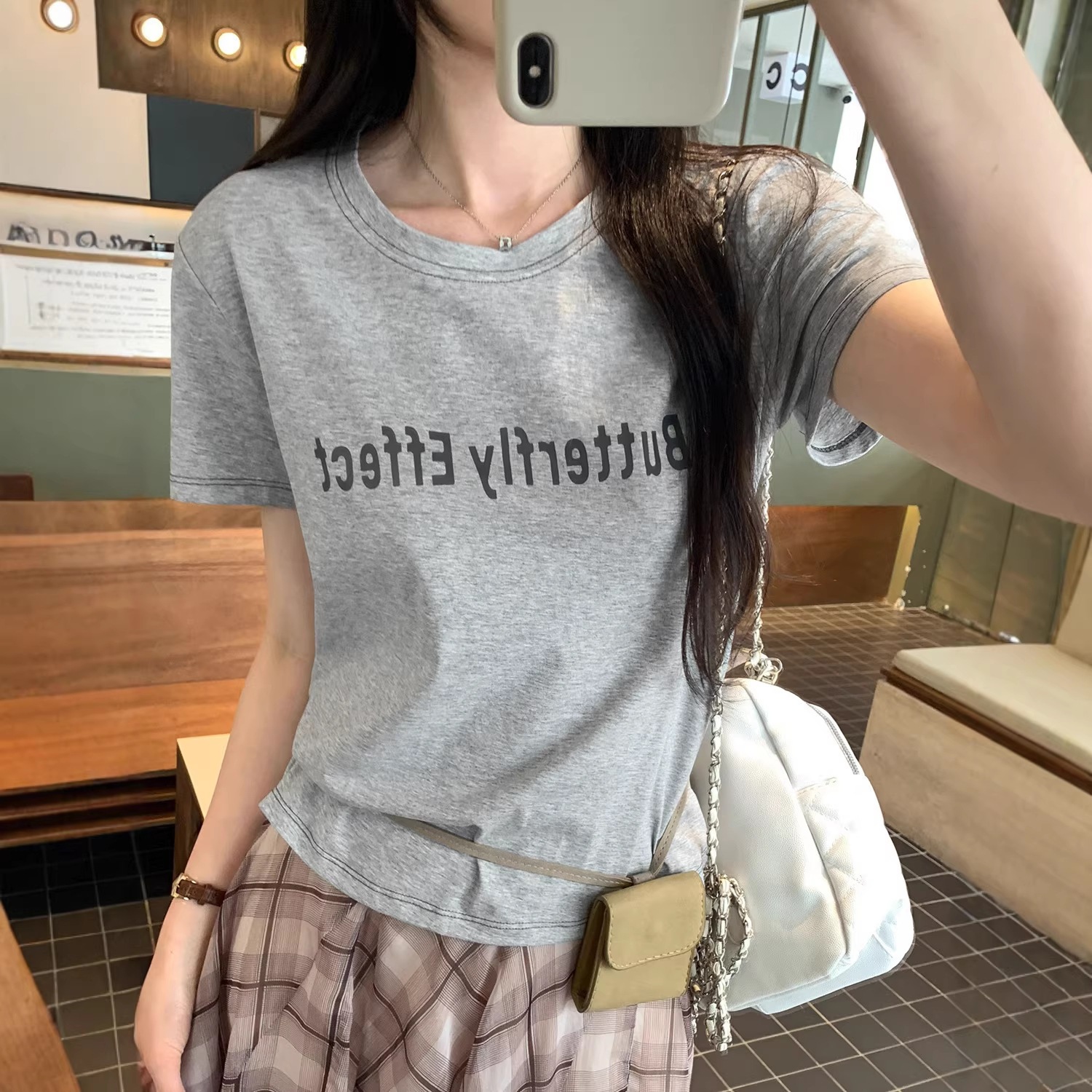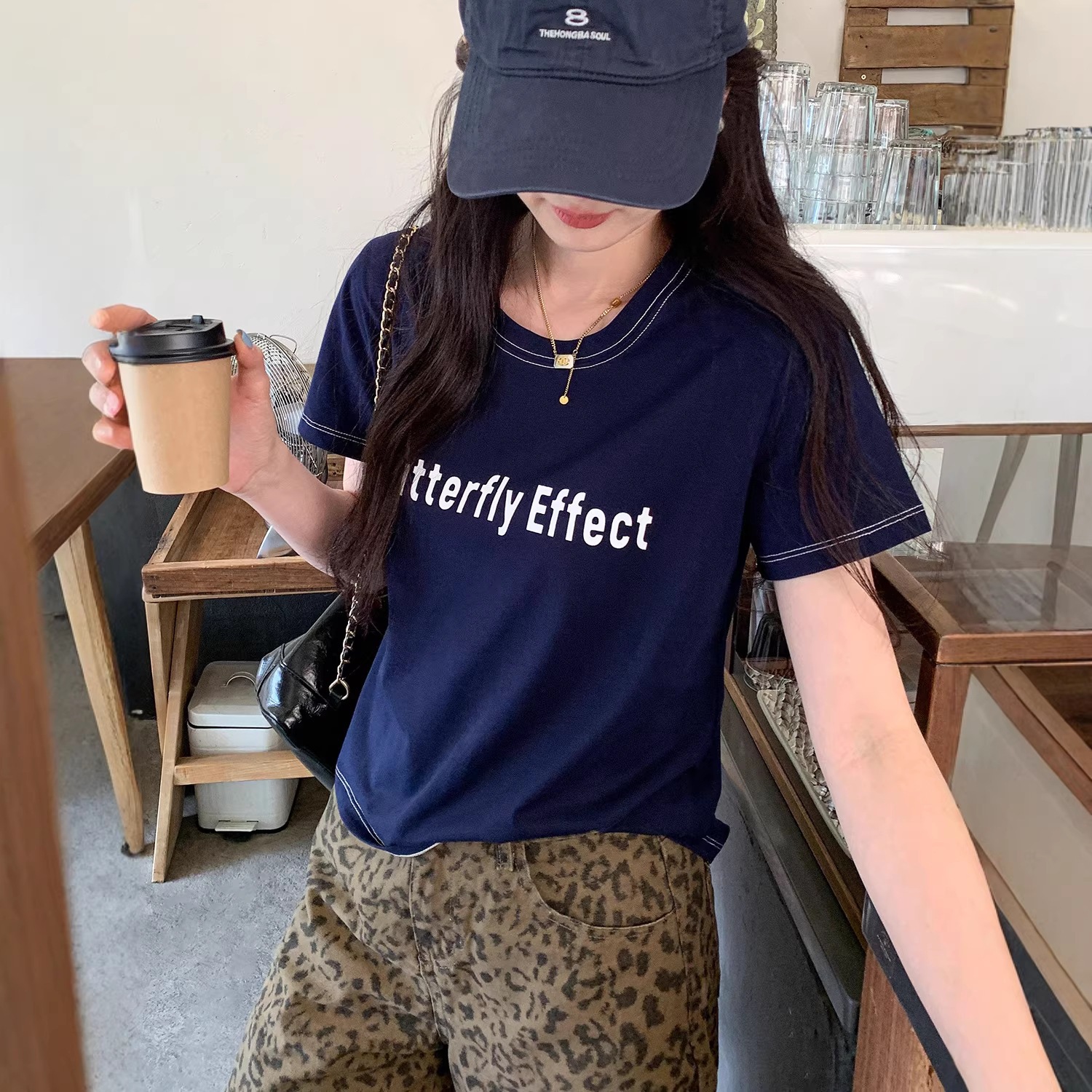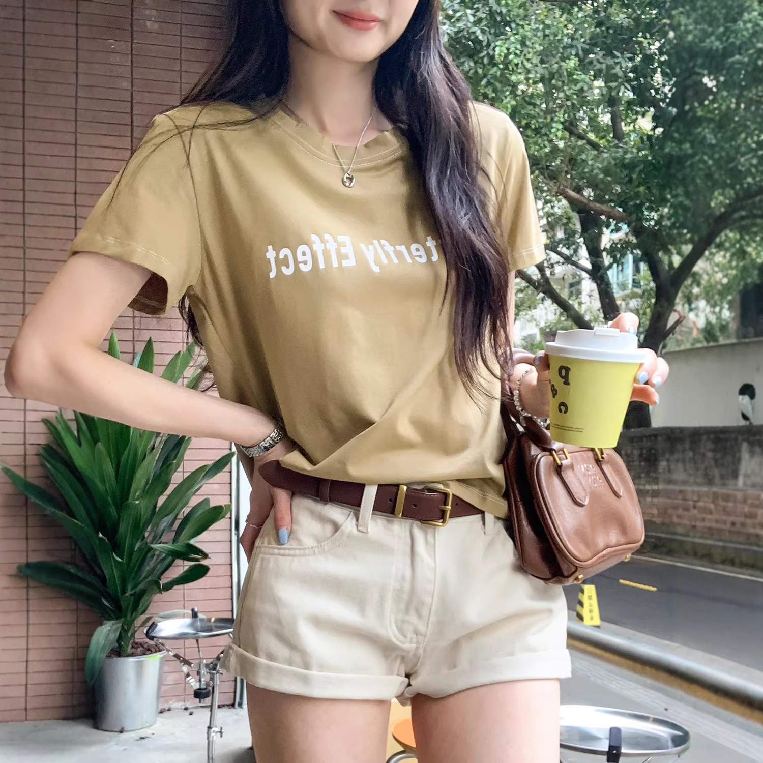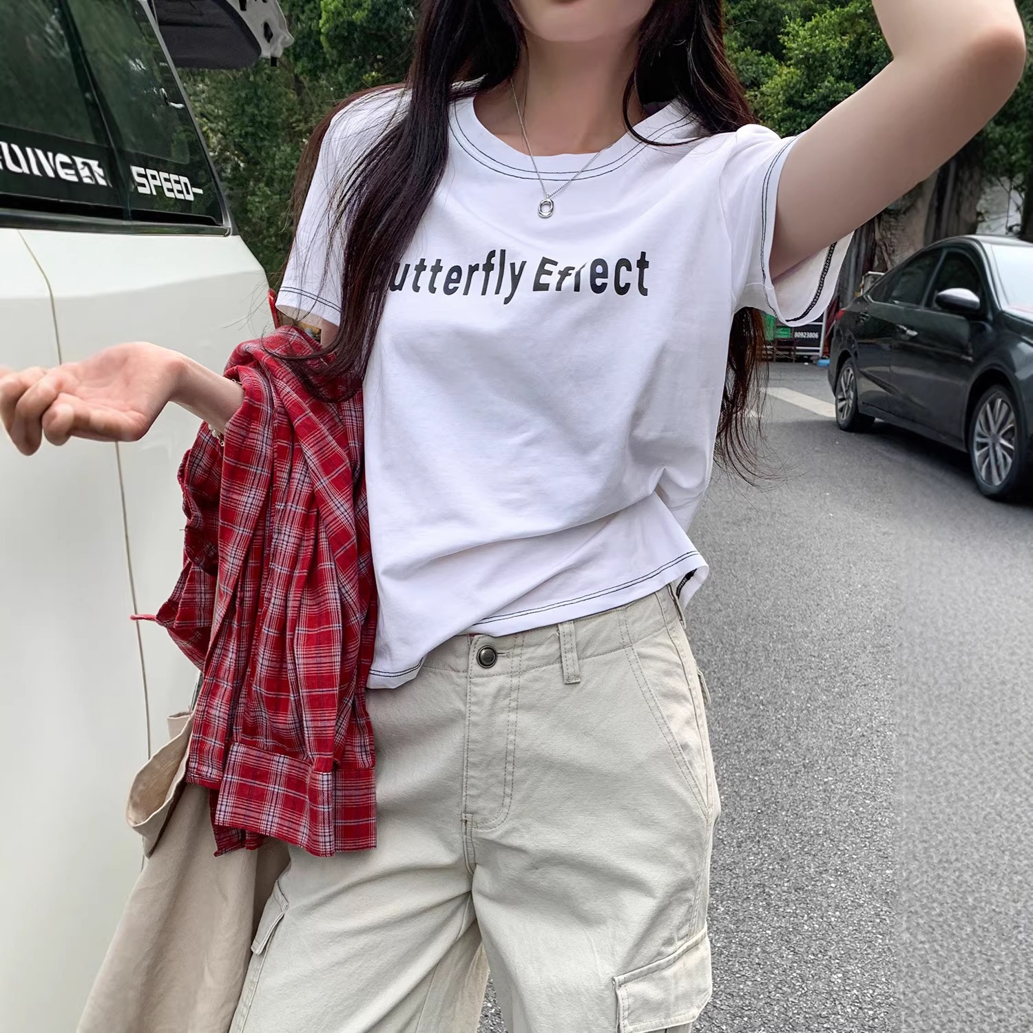 アルファベットプリントホワイト半袖Tシャツ女性夏新作韓国風ゆったり体型カバー万能Tシャツストレート肩トップス