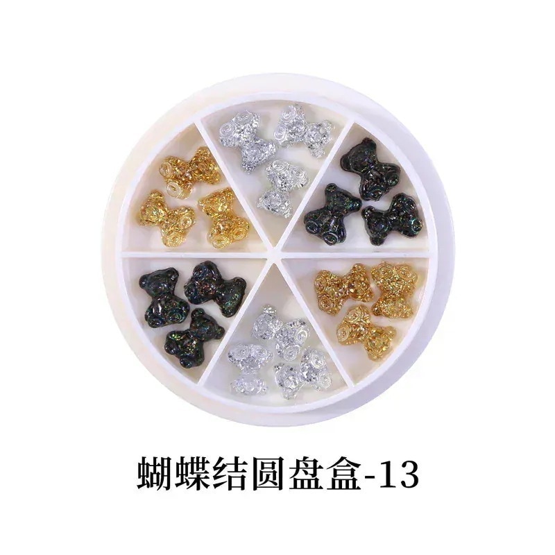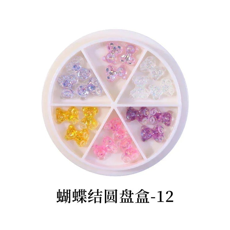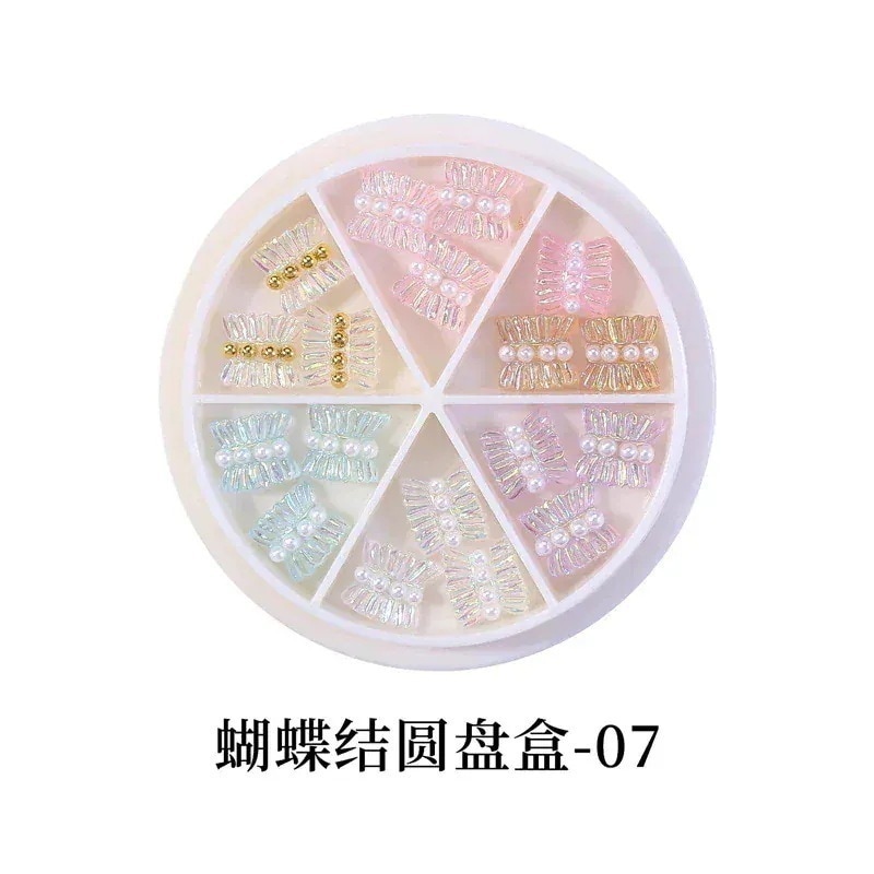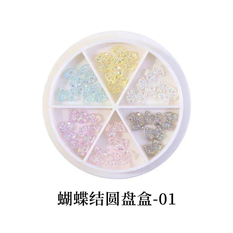 日系オーロラリボンネイルアクセサリー スパンコールラウンドボックスセット立体ネイル装飾美