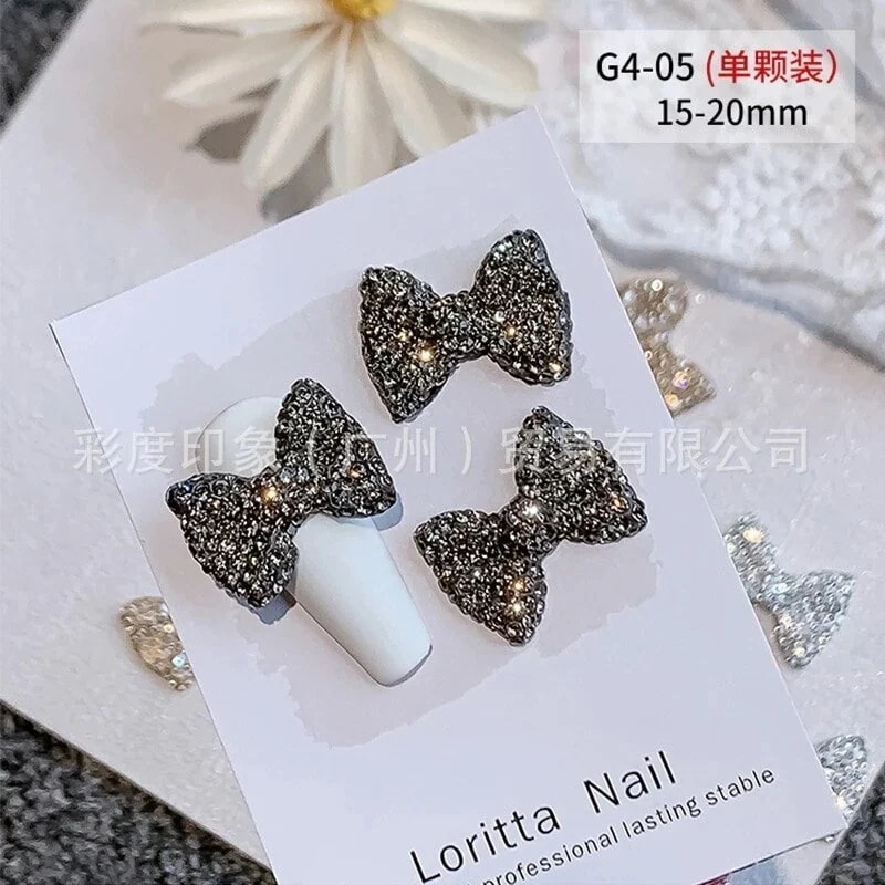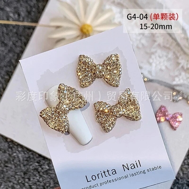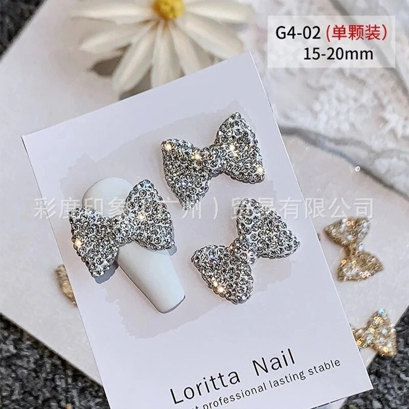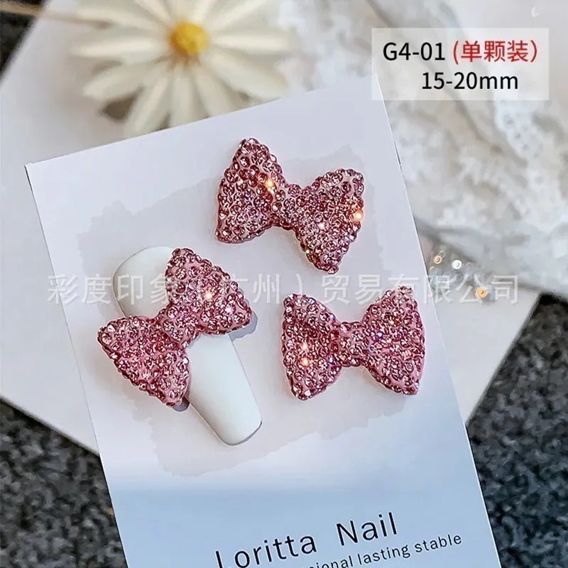 大サイズ満ドリルのネイルリボンの豪華な3d爪の装飾は水晶の蝶結びのアクセサリーg 4