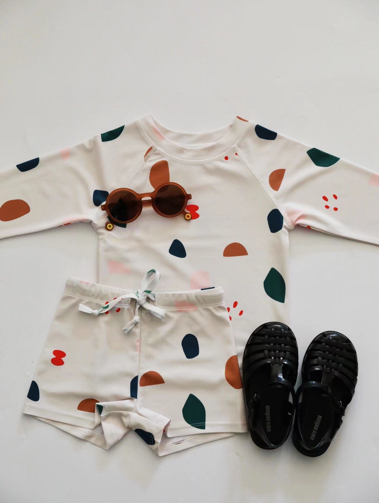 水着 夏用 男の子・赤ちゃん用 速乾ツーピース水着 新作 長袖日焼け止め水着