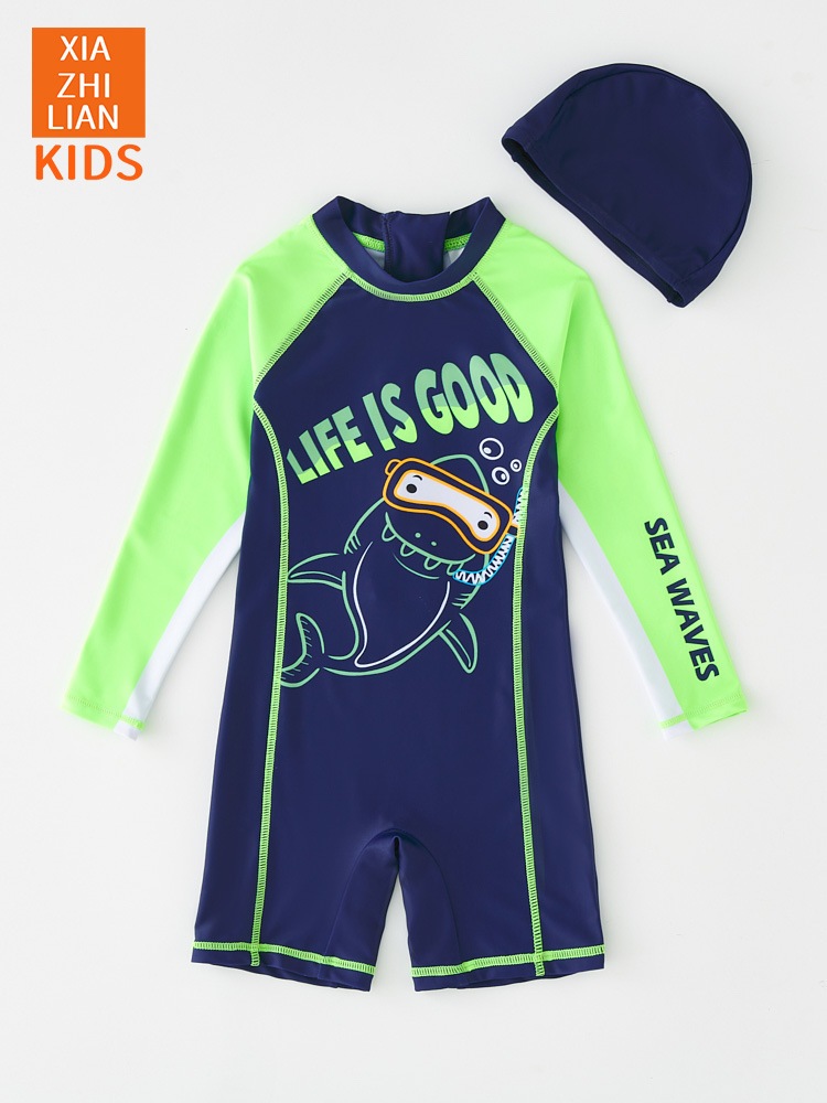 子供用水着 夏用 UVカット 長袖 男の子用 速乾ワンピース水着