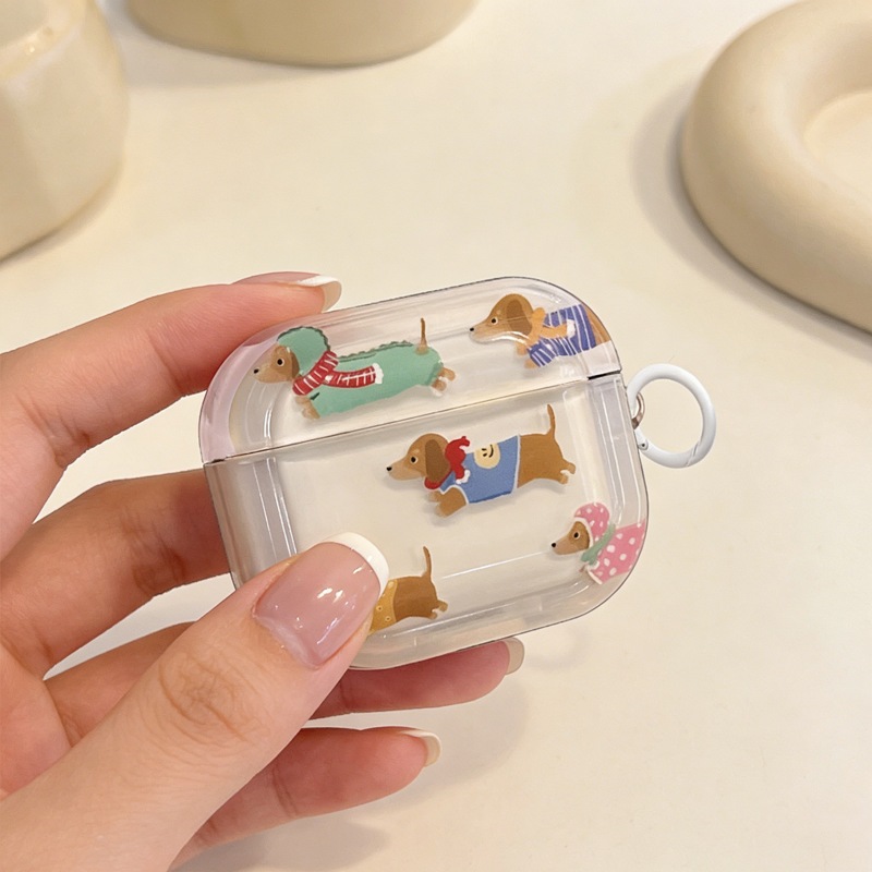 AirPods ケース かわいい漫画風ダックスフント犬のAirPods バレンタインデーのプレゼント おしゃれ 韓国風 母の日ギフト Pro保護ケースApple Bluetoothイヤホン用ソフトケ