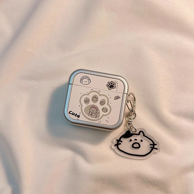 おしゃれ バレンタインデーのプレゼント AirPods ケース 母の日ギフト 韓国風 かわいいカートゥーンカップルの足跡猫と犬のデザインのiPod保護ケース新しいiPod Appleイヤホンケース