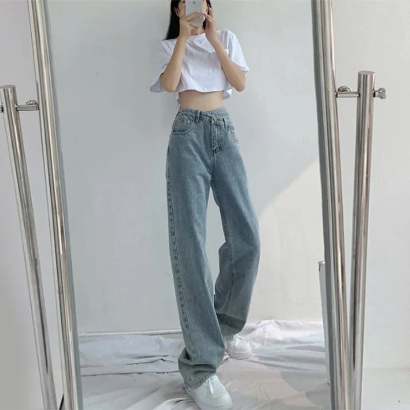 美脚に見えるストレートシルエット デニムパンツ パンツ ワイドジーンズ ジーパン リラックスパンツ 韓国ファッション レディース ストレッチ 着痩せ ボトムス カジュアル きれいめ