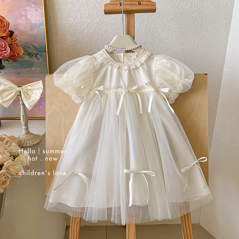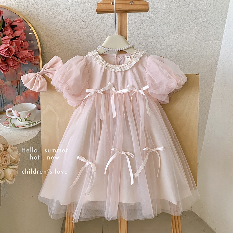 新作 夏 女児 プリンセスドレス パフスリーブ ネット紗 ふんわりスカート おしゃれ トレンド 甘い 上品 子供 キッズ 発表会 誕生日 フォトウェア