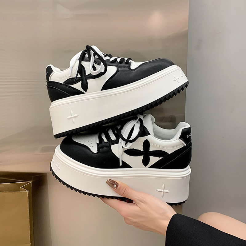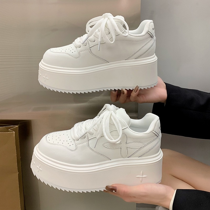 厚底シューズ 女性 2025 新作 革 小さな 白い 通気性の高い マフィン トレーナー 小さな人に