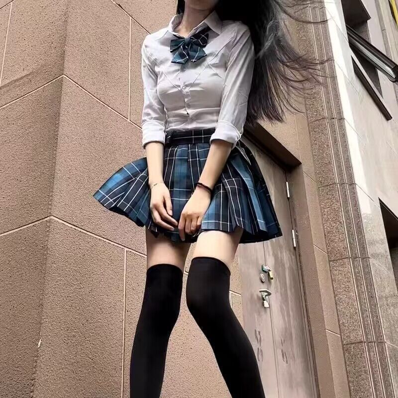 制服 セット コスプレ ウエスト絞り長袖シャツ 女性用制服 女性用学院風白シャツ 細身スリム チェックスカートセット 韓国ファッション