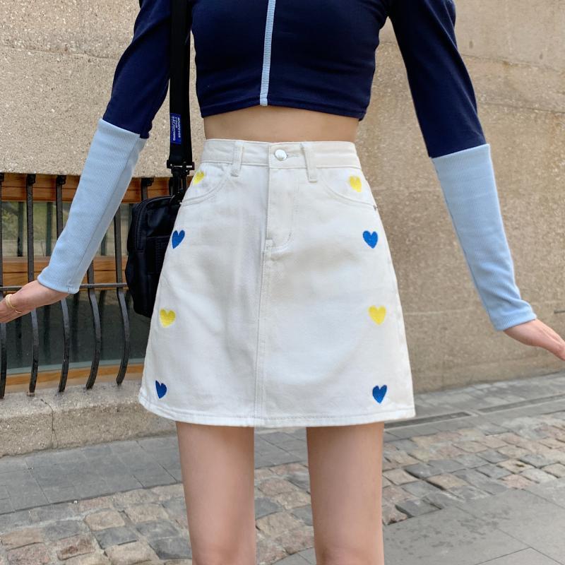 デニムショートスカート女性韓国版のの学生ハイウエストバッスルスカートサブ