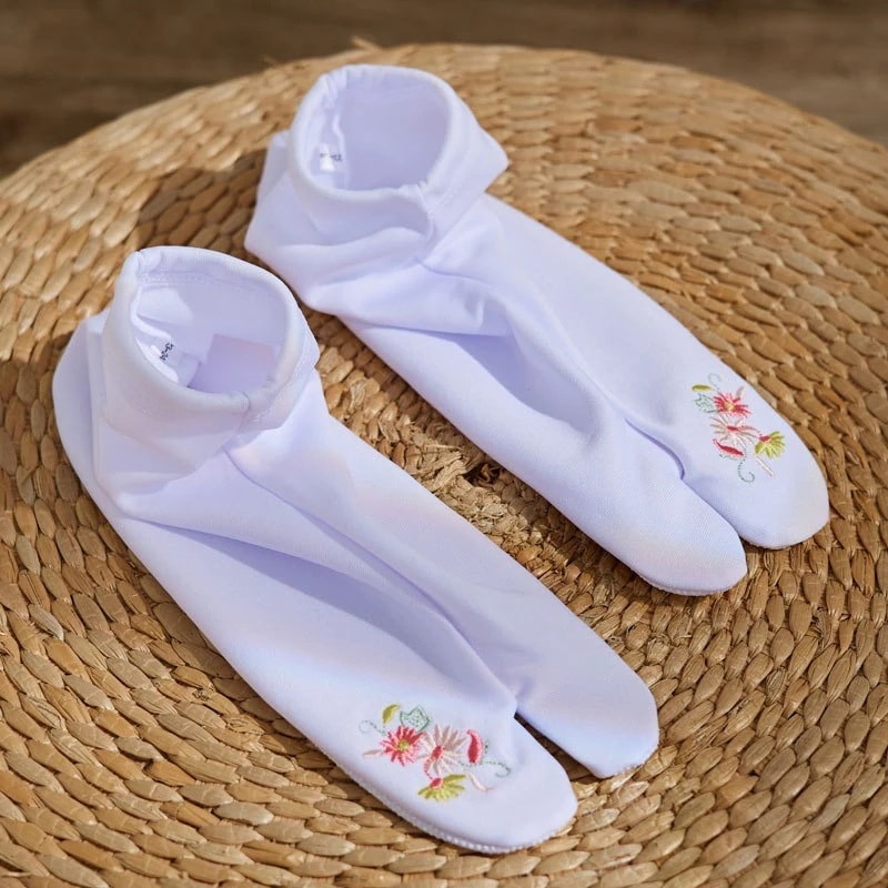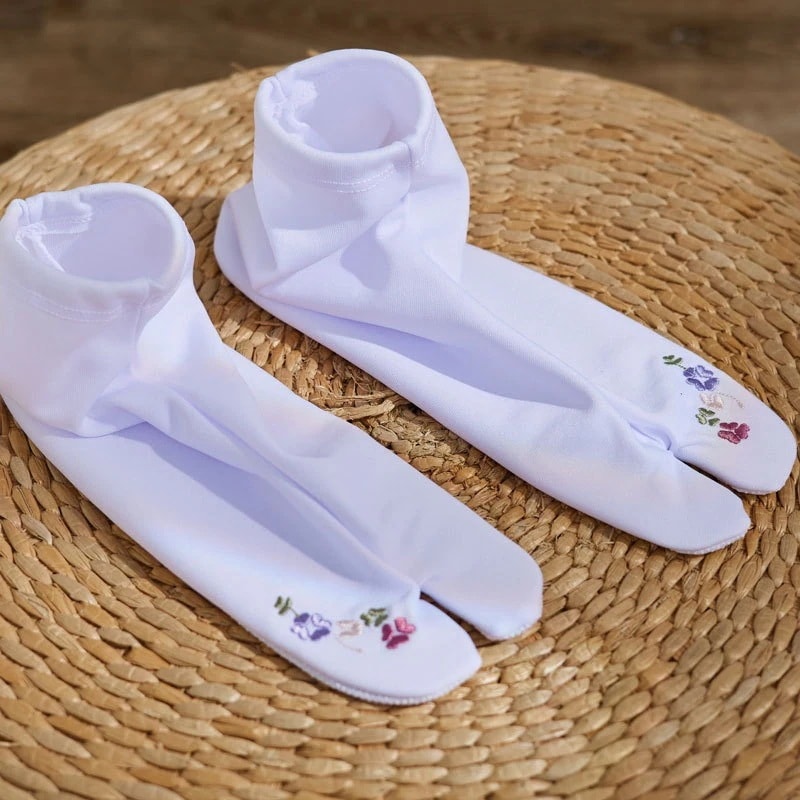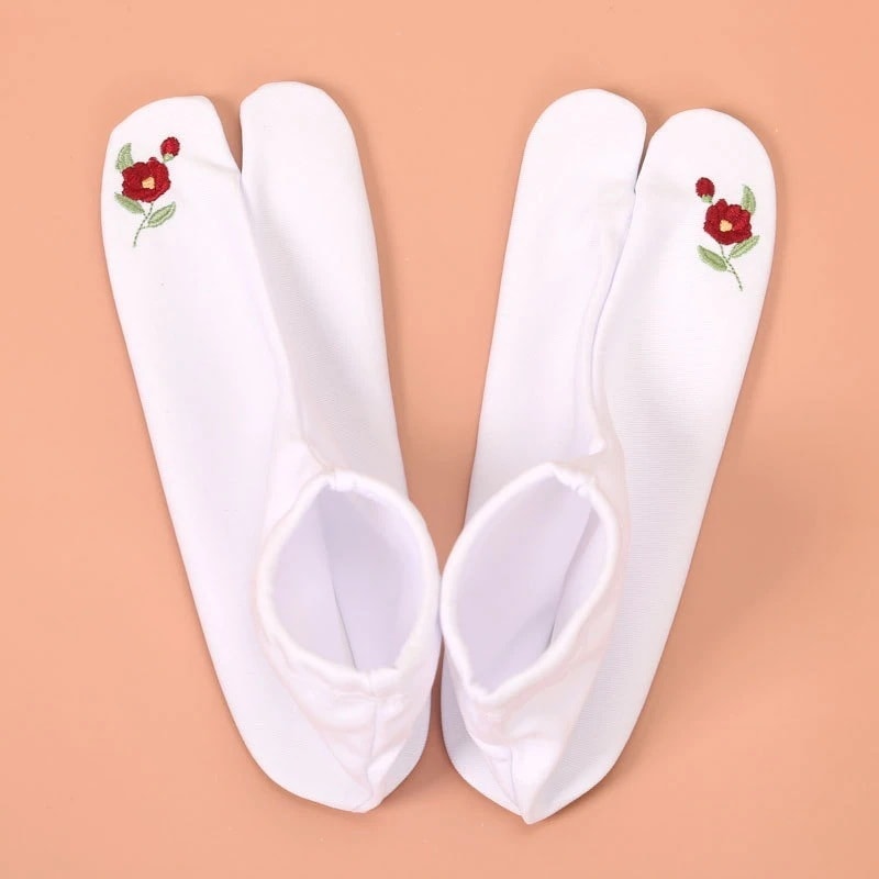木靴下刺繍白い足袋女性式2本指靴下コスプレ点ゴム着物靴下女性靴下
