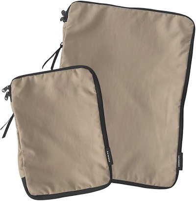 【ボンモマン公式】 トラベルポーチ 圧縮 2枚セット 軽量 圧縮袋 衣類 旅行 収納ポーチ おむつポーチ パッキング 出張 アンジェ bon moment (ベージュ, S・Lセット)
