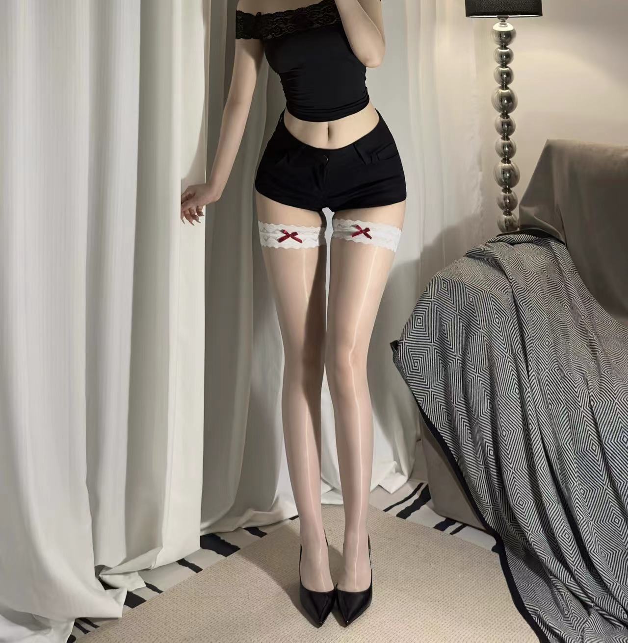 【3枚ご購入で200 OFF!】オーロラ明るいレース長い筒ストッキングを演じます