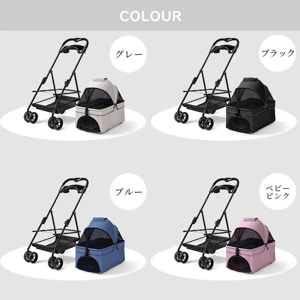 ペットカート 折り畳み4輪 ストッパー付き 通気性 軽量 多頭ペット用 散歩