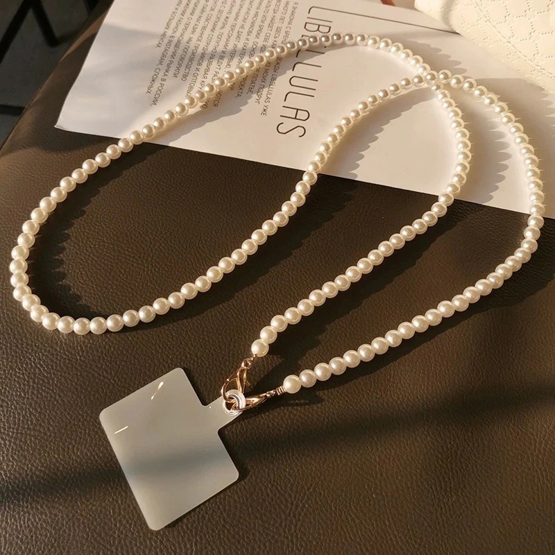 携帯電話ストラップ ロング レディース クロスボディ ホルターネック ハンギング チェーン パール ハンドビーズ 取り外し可能なバックル 携帯電話ケース クリップ