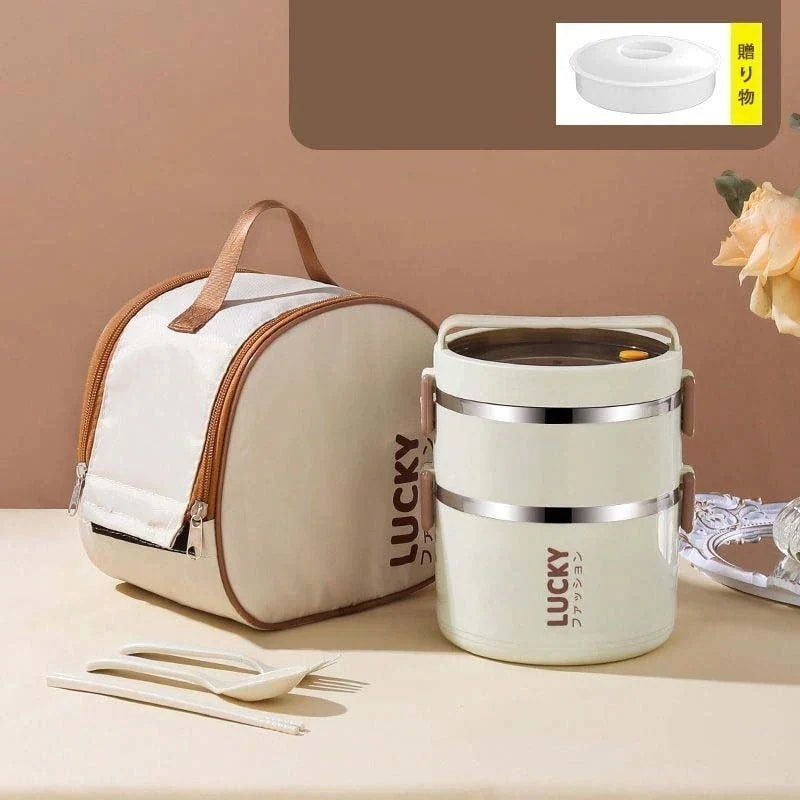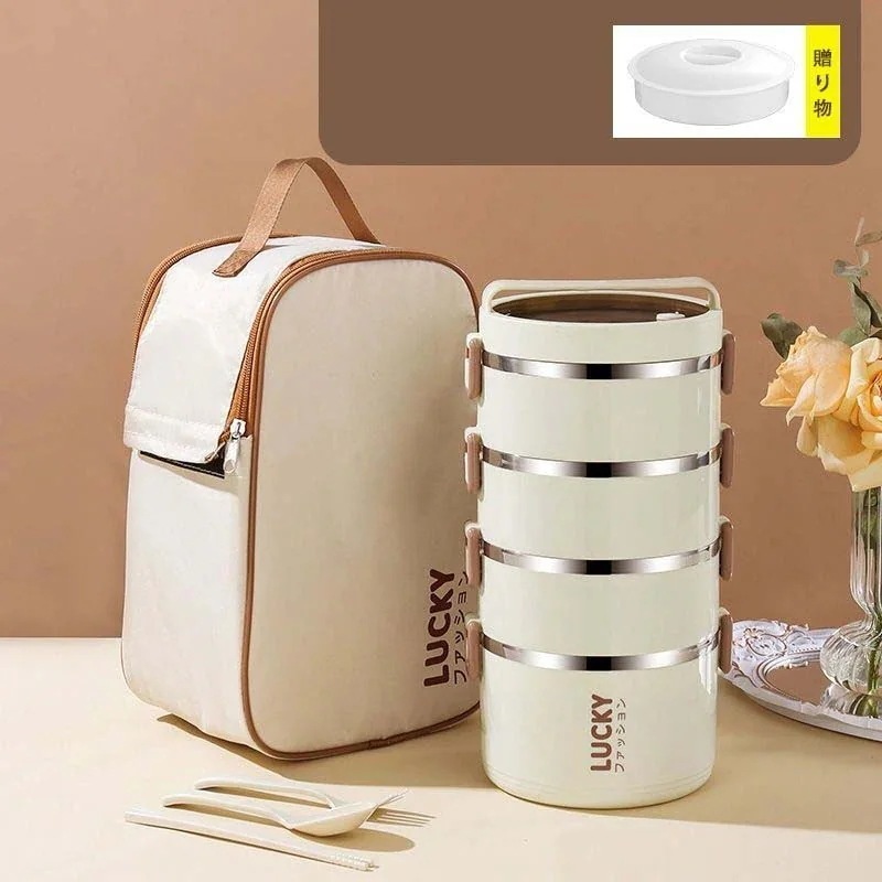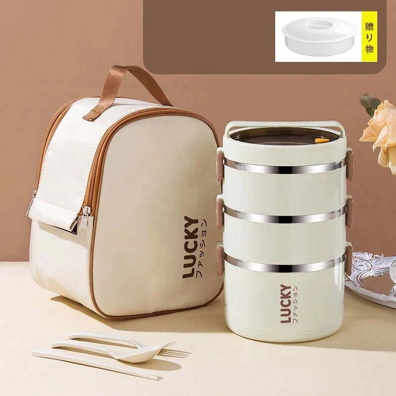 ランチボックス 2段 3段 4段 保温カバン コンパクト大容量 お弁当箱 304ステンレス中身 スプーンフォーク お箸付き フック付きこぼれ防止 6時間保温