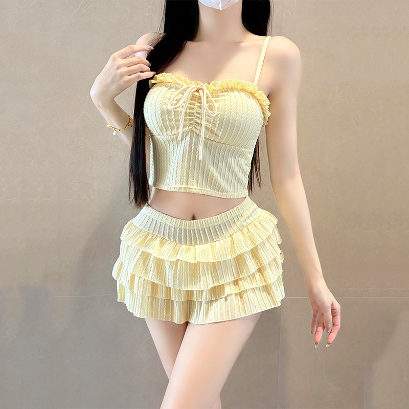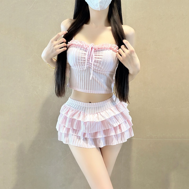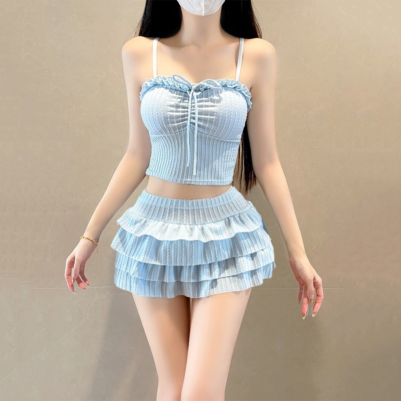 レディース水着 ストラップ付きツーピース 無地 ケーキスカート キュートな少レディース風 水着 和風 可愛い 温泉用水着