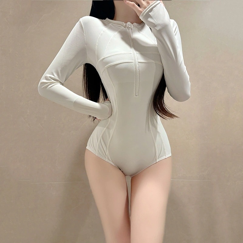 レディース水着 ワンピース 長袖 スポーツ 韓国風 無地 シンプル スリムフィット 温泉リゾート用 プロ仕様のワンピース水着