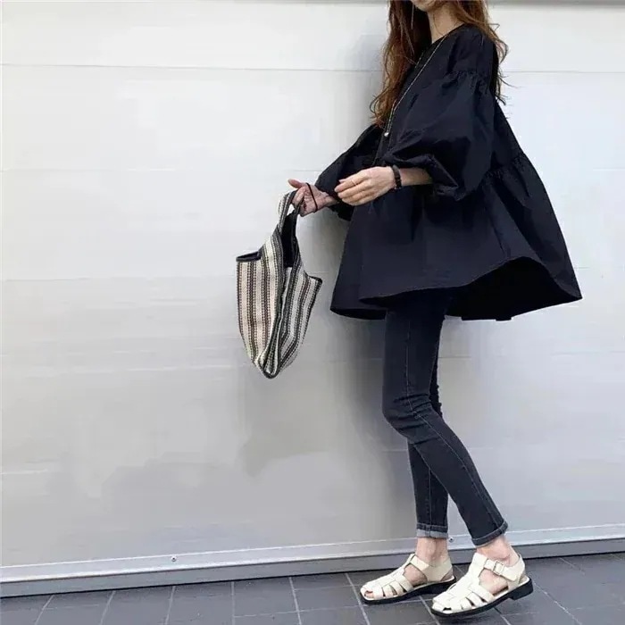 【即納】販売最低価 ! ブラウス レディース トップス シルエット七分袖 ランタンスリーブ シャツ ギャザー 春夏