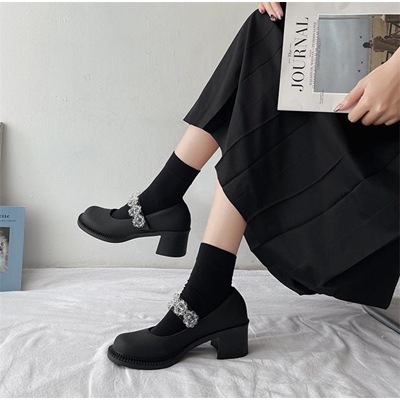 見た目カワイイ 早い者勝ち ハイヒール 厚手のヒール シングルシューズ レザーシューズ お出かけ