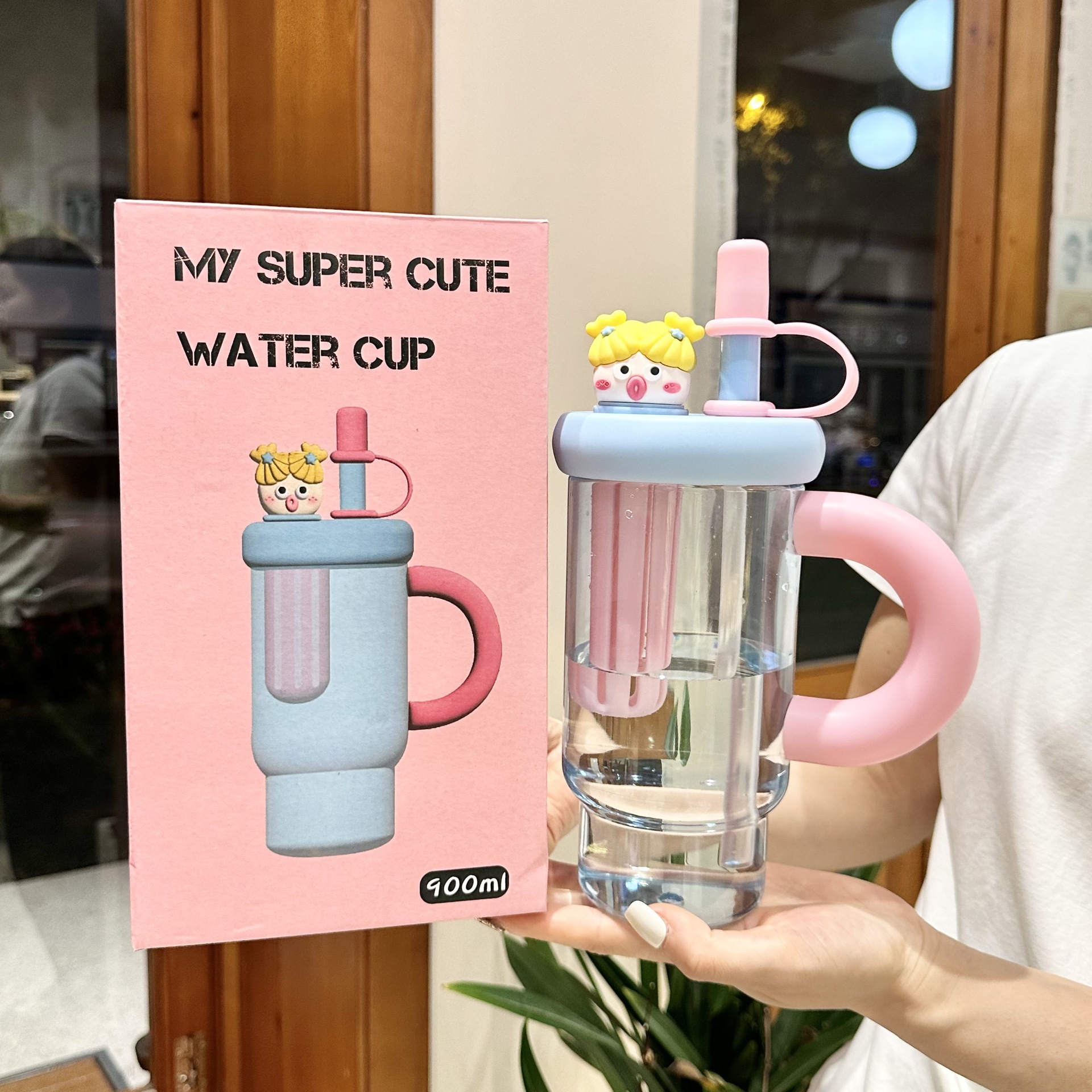 夏グッズ 贈り物 カラフル 鮮やか 携帯用水筒 夏らしい爽やかさのある大容量プラスチック製アイスカップキュートなデザインのストローカップ女性用自転車用ウォーターボトル