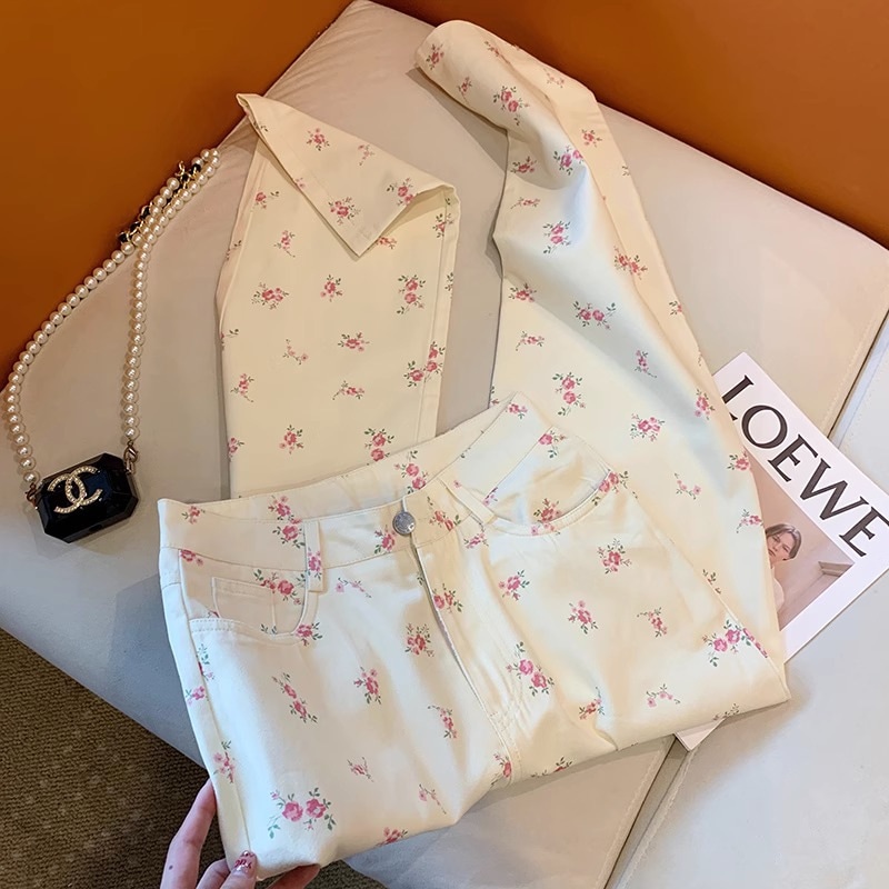 甘い砕花高腰ストレートパンツ女性夏の新しいデザイン感韓国版insゆるいジーンズが痩せているズボン