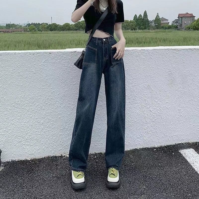 高腰広脚ジーンズ女性夏韓版ins風が痩せている