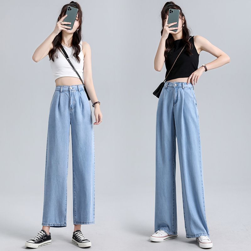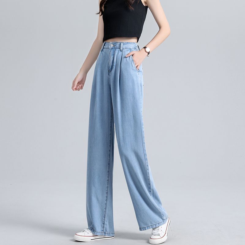ハイウエストワイドレッグテンセルデニムパンツレディース夏物薄手ゆったりアイスシルクストレートパンツロングパンツ女性用韓国風