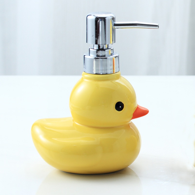軽量 トラベルボトル エコ セラミック製ハンドソープボトルローションボトルソープディスペンサープッシュ式のかわいい黄色いアヒルのシャンプー・ボディソープ詰め替えボトル