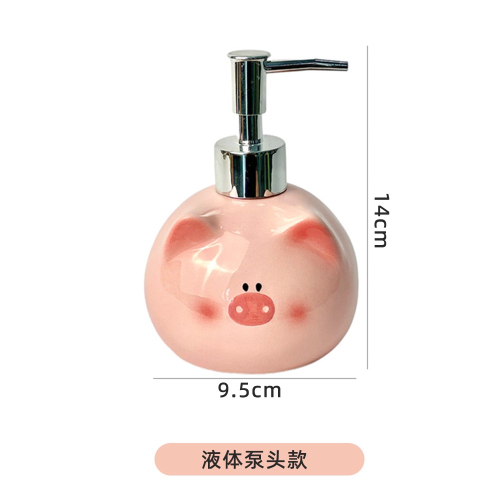 軽量 かわいい豚型ローションボトル エコ 家庭用バスルーム トラベルボトル シャンプー・ボディソープ用詰め替えボトル セラミック製プッシュ式空ボトル