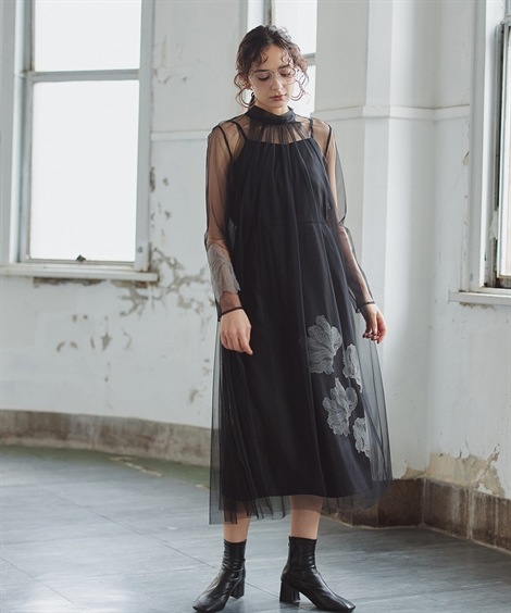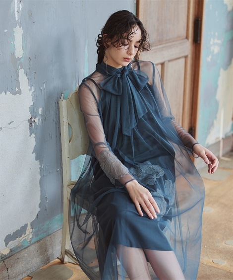 | 材料/素材 | 品質=[表側]ポリエステル100%[別布]ポリエステル90%・ポリウレタン10%[レース部分]ポリエステル100% 【裏地】有(身頃】 後ろリボン涙開 後ろ身頃ヨーク部分ゴム、ウエスト後ろゴム※柄の出方が多少異なる場合があります。※繊細な刺繍・チュールを使用しているため、引っかかりなどにご注意ください。 | ||