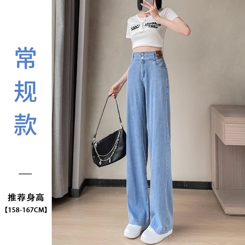 テンセルデニムパンツレディース夏用薄手ハイウエスト着やせゆったり落ち感スキニー冰絲ワイドパンツ女性用