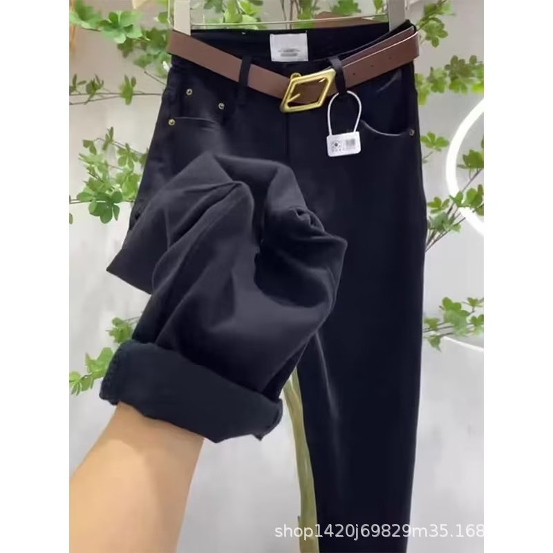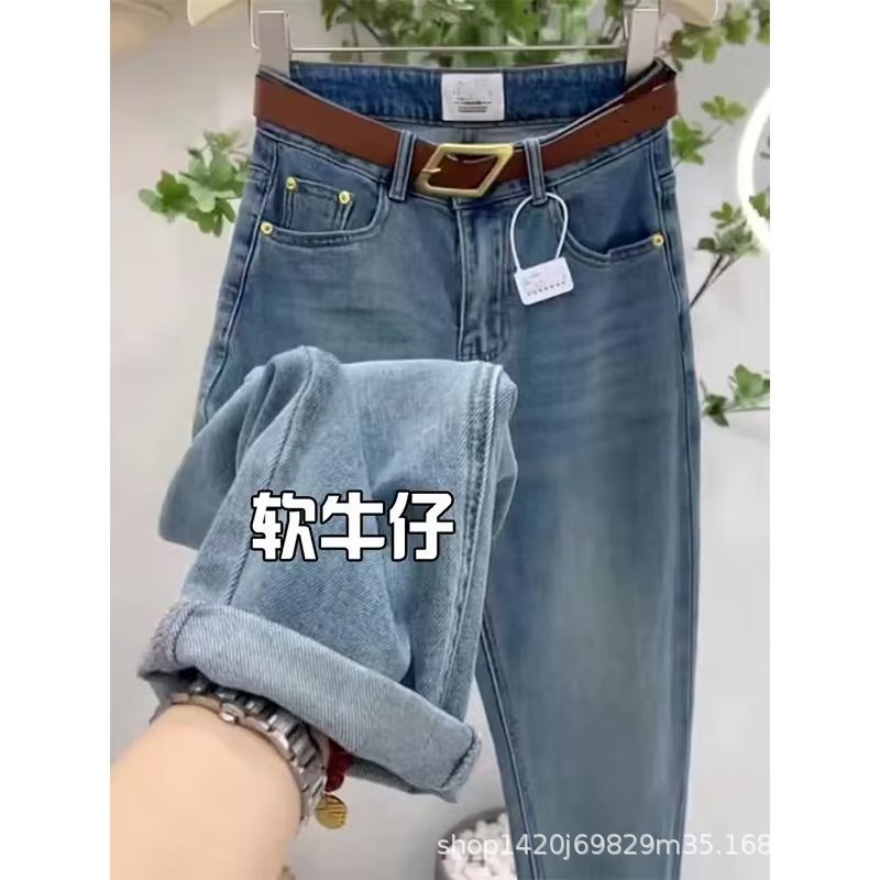 大きいサイズ女性用ハイウエストデニムパンツ春新作梨型体型太めさんゆったり伸縮ハーレムオヤジパンツ