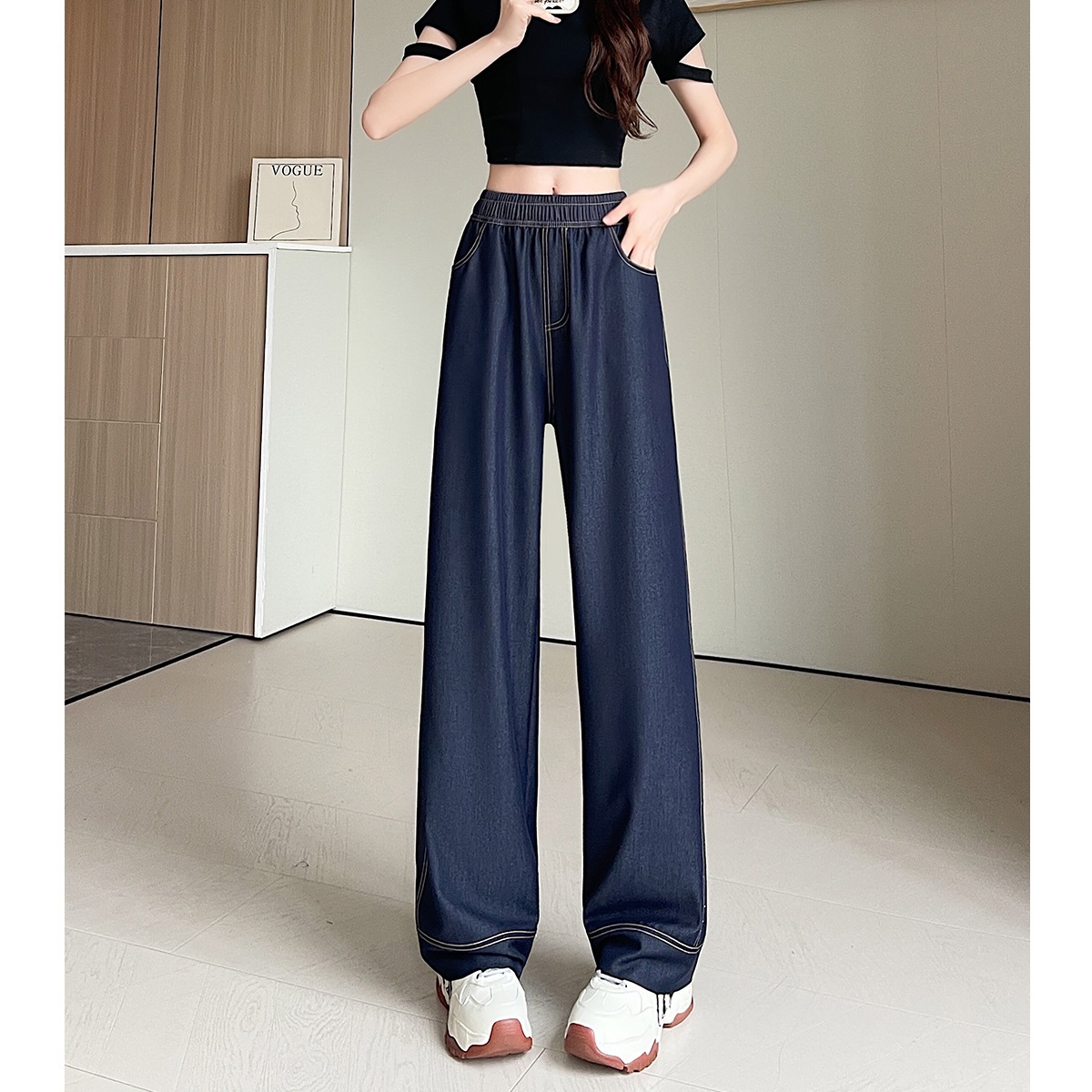 レトロなテンセルデニムパンツ女性用春夏薄手新作ハイウエスト落ち感のあるスリムフィットゆったりシルエット着やせ効果のあるワイドクロップドストレートパンツ