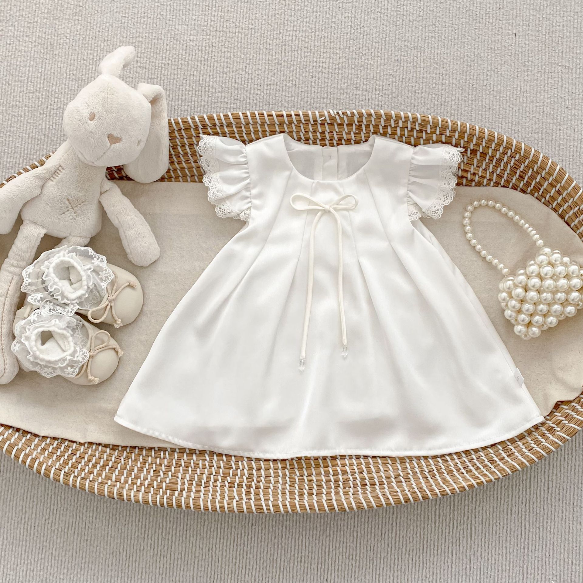 2026 夏の新作 女の子フライスリーブロンパース 赤ちゃん可愛いリボンロンパース プリンセスワンピース 姉妹服 ベビー服