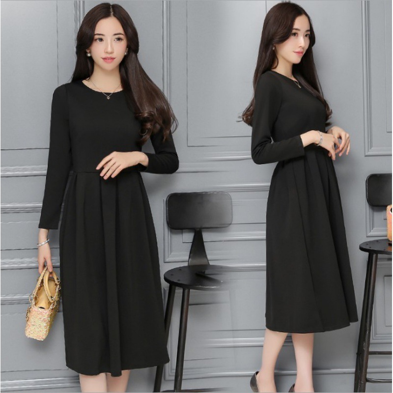 【急速出荷】 即納フランス式ヘボン2024春と秋長袖ワンピース女性黒い長いタイプ