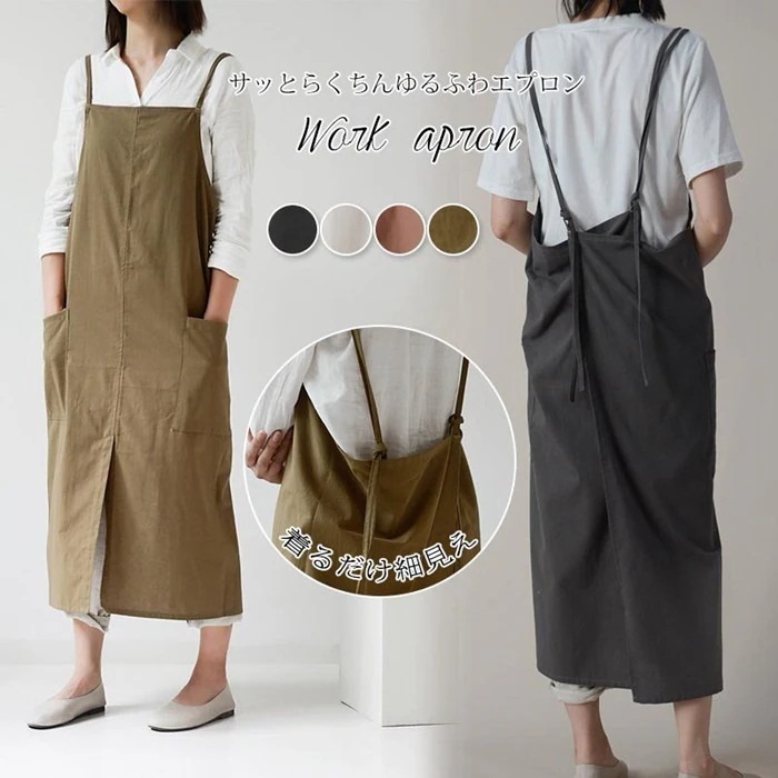 【本日のイベント】即納 毎日たのしく着られるエプロン ナチュラル エプロン新登場 撥水加工 レディース シンプルエプロン
