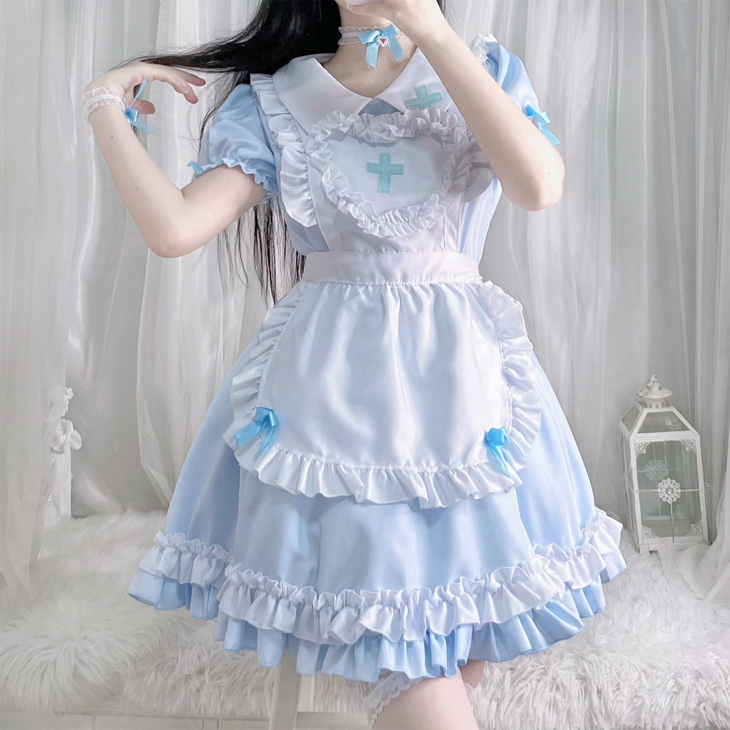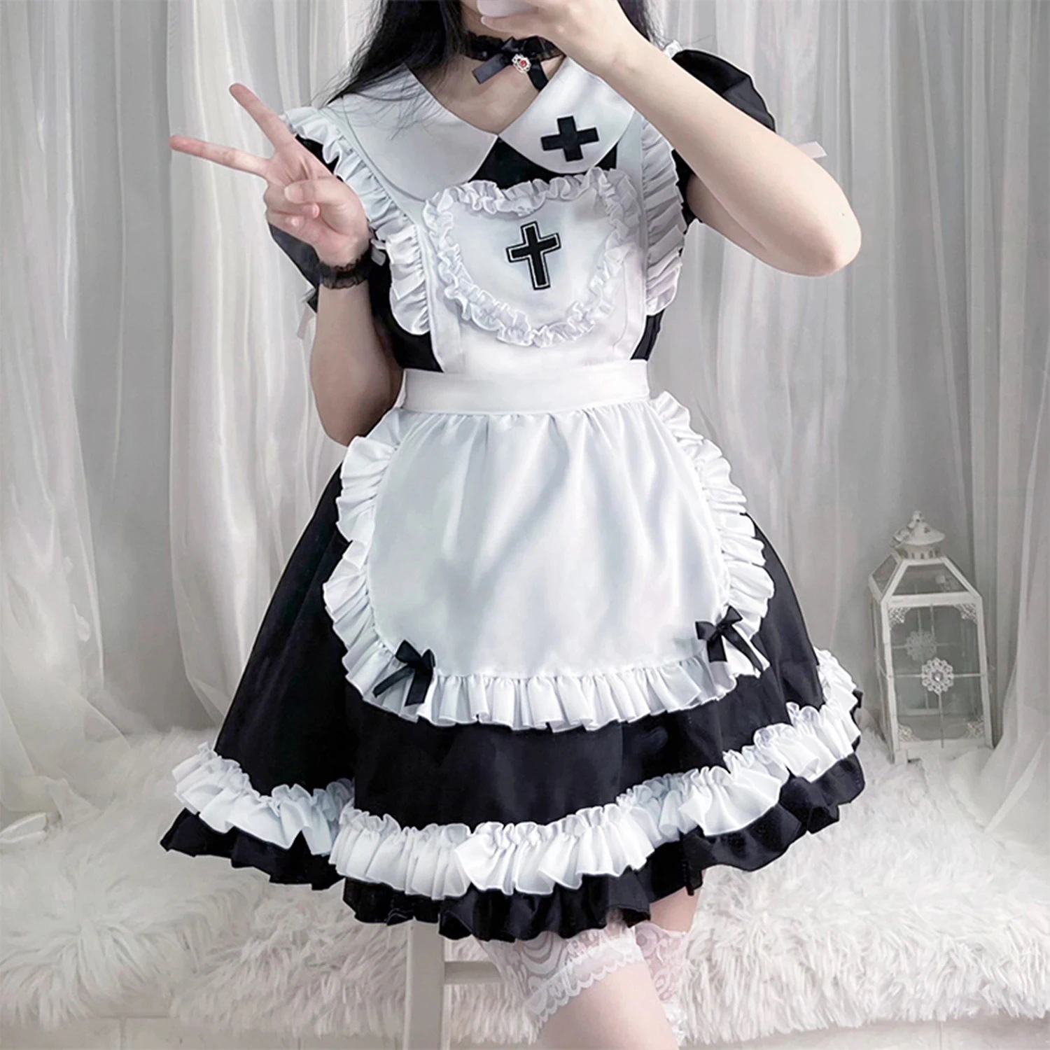 2025 メイド服 人気 4色のメイド服 キュート かわいい ハイウエスト フリル ドレスワンピース コスプレコスム 文化祭 レディース