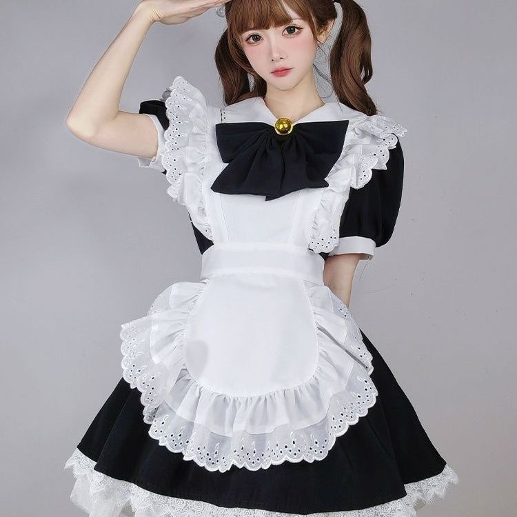 2025 メイド服 黒白 人気 新作メイド服セット 可愛い ホワイト/ブラック エプロン メイド服ワンピース ドレスワンピース コスプレコスム 文化祭 レディース