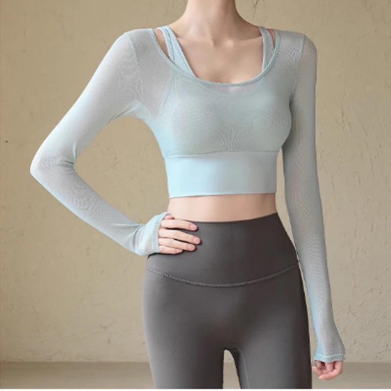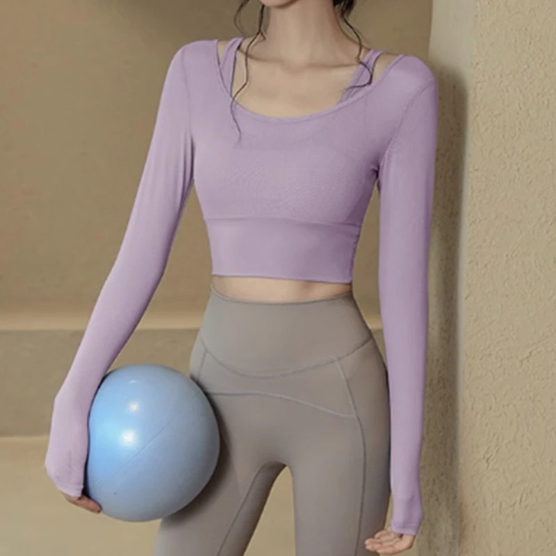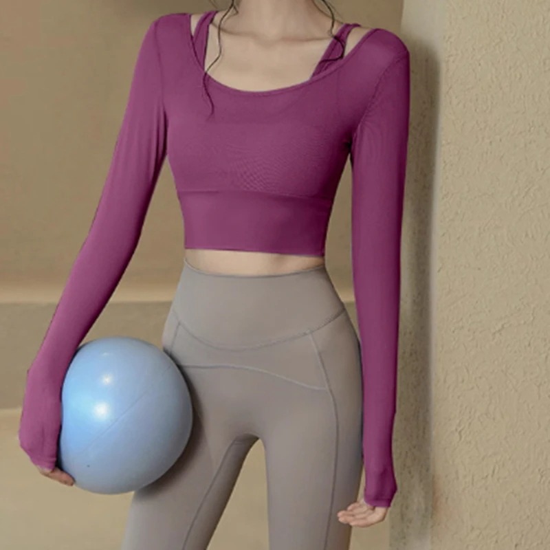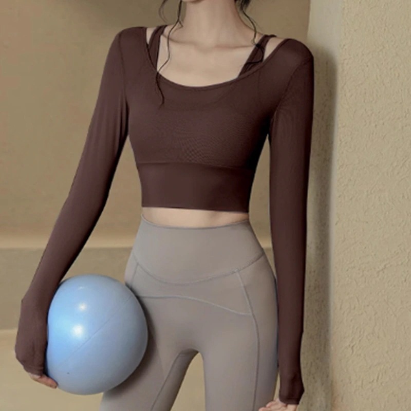 2025 秋 ヨガウェア 長袖速乾トップス カップ付き タイト 薄手 体型カバーTシャツ レディース
