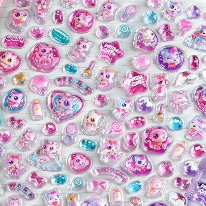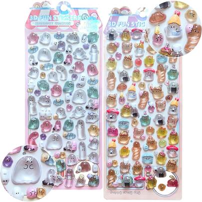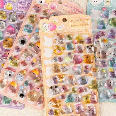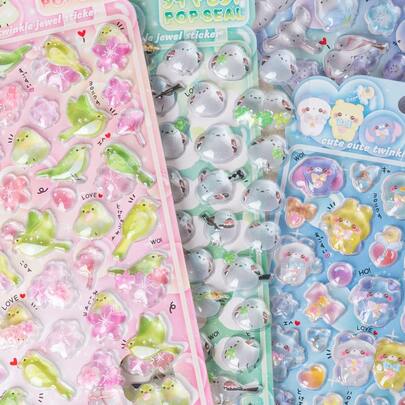 輝くゼリー動物3Dステッカー - かわいいグリッター小鳥ステッカーハンドメイドDIYバレンタインデー/新の装飾に最適な甘い贈り物ノートパソコンプランナーカップフォトアルバムの装飾ウェディ