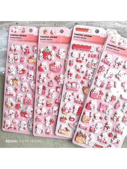 ランダムカラー かわいいピンクのイチゴウサギのカートゥーン EVAフォームステッカー子供のスクラップブッキング日記の装飾に最適なソフトなもえスタイル